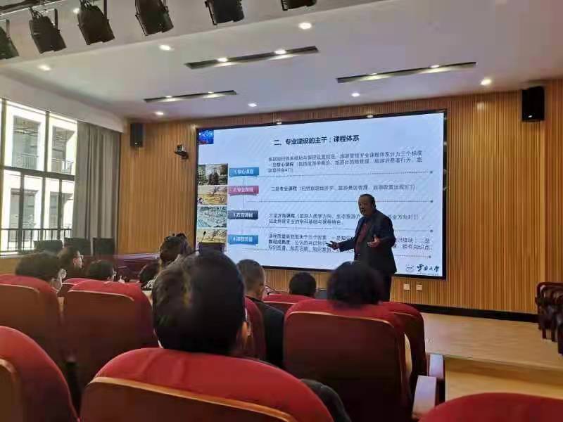 2021年11月19日下午,旅游与酒店管理学院国家一流专业建设促进会在齐远楼220报告厅召开。会议由李雪松副院长主持,学院全体教师参与会议。