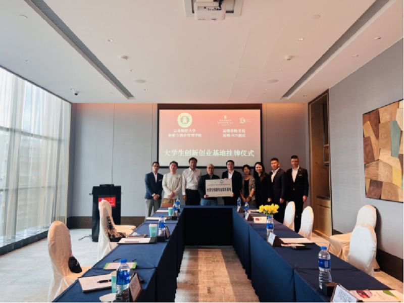 会上校企双方进一步就近期毕业生招聘、学生入职培养、低年级学生职业体验教育等事宜进行了交流,达成很多共识。会后,校企双方举行了“大学生创新创业基地”挂牌仪式。标志着双方的合作进入了一个新的阶段,将为学生提供更加广阔的创新创业空间和实习就业平台。相信在双方的共同努力下,校企合作必将结出丰硕的成果,为酒店培养更多高素质的创新型专业人才。
