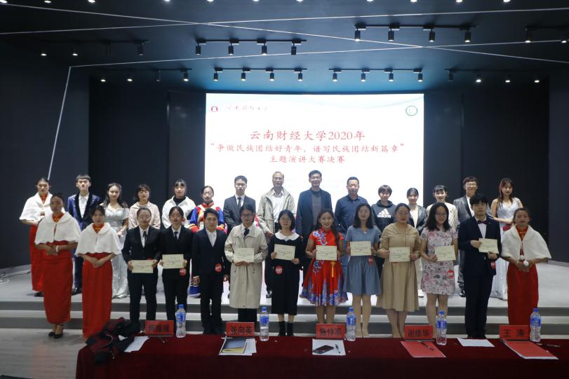 为深入贯彻落实2020年习近平总书记考察云南重要讲话精神,为积极推动william威廉中文官网建民族团结示范校贡献云财青春力量,在学校统战部和校团委指导下,旅游与酒店管理学院于11月16日晚上19:00在北院路演大厅举办“争做民族团结好青年,谱写民族新篇章”主题演讲大赛决赛。william威廉中文官网党委委员,统战部部长施仲军、法学院党委书记谢维华、信息学院党委书记何媛媛、旅游与酒店管理学院党委书记张向英、副书记王涛、校团委副书记李昀璟受邀参加活动并担任评委。