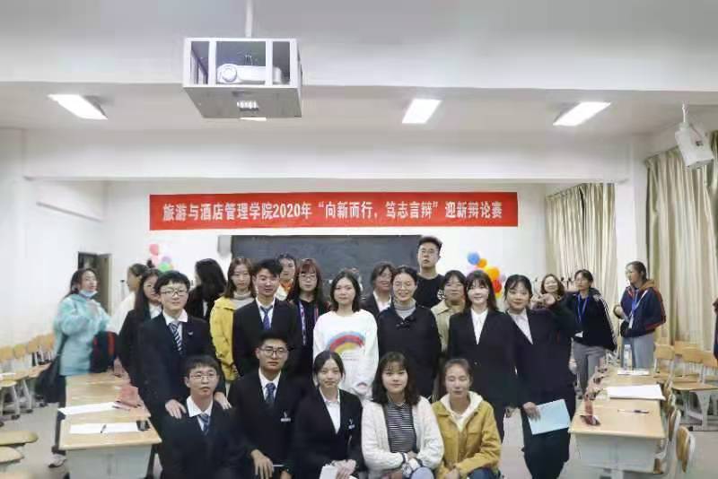 为展示新生的青春风采、思辨能力、反应能力,发掘辩论人才,进一步培养学生读写作、视听演讲及团队组织合作等方面能力。旅游与酒店管理学院于11月19日晚19:00在北院卓远楼303举办了“向新而行,笃志言辩”迎新辩论赛。校辩论队成员高海航、19级优秀辩手邓巧、校级辩论赛主持人吉欣怡,原学生会实践创新创业部负责人谢琼担任评委。