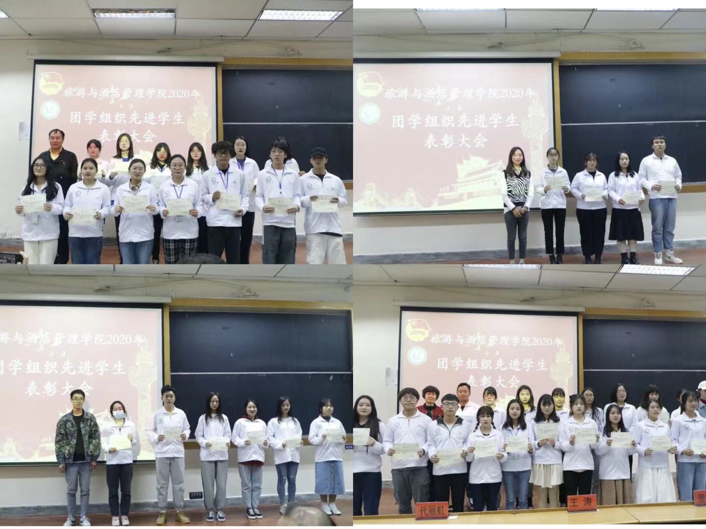 时光荏苒,光阴如梭,忙碌而又充实的2020年已经过去,我们迎来了崭新的2021年。为表彰上一年在团学组织中表现优异的学生骨干,激励同学们在新的一年扬起斗志,旅游与酒店管理学院于2021年3月5日晚七点在南院逸远楼召开2020年团学组织先进学生表彰大会。旅游与酒店管理学院党委书记张向英、党委副书记王涛、学生科主任李永祥、团委负责人代丽虹、专职组员杨倩、辅导员张海明参加会议。