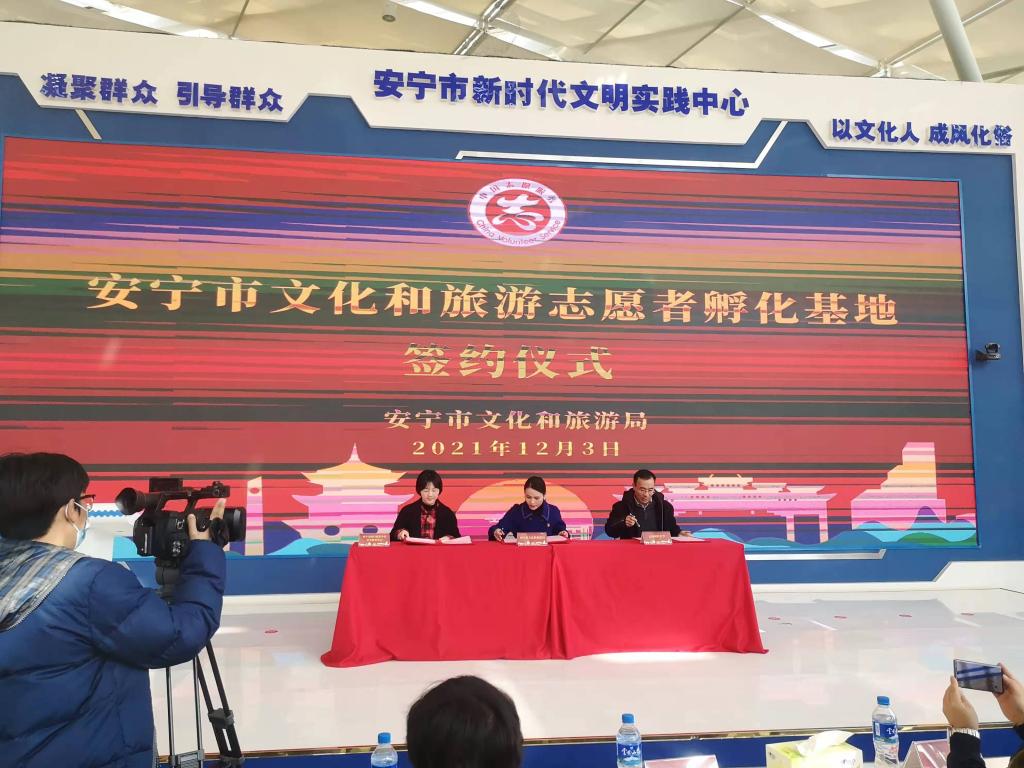 学院院长晏雄、党委副书记李永祥、团委负责人张海明到安宁市文明实践中心参加安宁市文化和旅游志愿者孵化基地暨安宁市文化和志愿者工作“政校社”合作启动仪式。william威廉中文官网旅游与酒店管理学院作为高校代表参加仪式,晏雄与安宁市文化和旅游局、向日葵青少年事务服务中心签署《安宁市文化和旅游局与安宁驻市高校、安宁市向日葵青少年服务中心战略合作框架协议》 ,李永祥接受文化和旅游局所授“安宁市文化和旅游志愿者孵化基地”牌匾。一同签署协议的有云南经济管理学院、云南工程职业学院、云南技师学院、昆明工业职业技术学院、云南理工职业学院等高校。