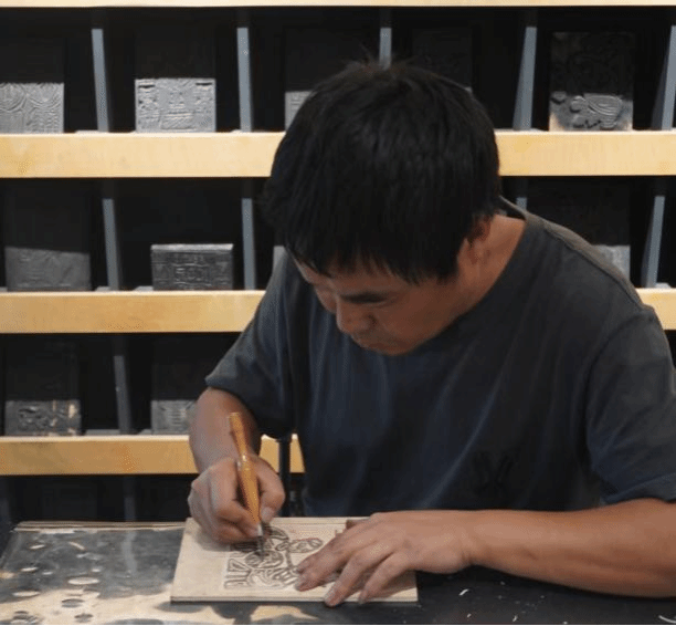 8月2日,实践队员在工作人员杨帆的带领下对匠志集民艺中心甲马展馆进行了参观。杨帆向实践队员详细介绍了白族甲马的制作过程,包括改料、绘图、模板雕刻、印刷等十一个步骤。随后,实践队对省级非遗传承人张仁华老师进行了访谈。张仁华年轻时从事的是医学行业,后因父亲中风无法再进行甲马制作,他意识到自己是家中唯一可传承这份技艺的人,于是他决定弃医从“马”。张仁华从事甲马制作的二十余年,深切体会到其中的苦与甜,正因为对甲马这项非遗文化的热爱与传承使命,张仁华一直从事着这份极具荣耀却艰辛的工作。