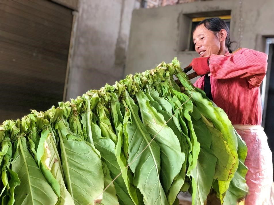 入户后,实践队员们认真观察农户们忙碌却井然有序的编烟过程。农户向实践队介绍,编烟也是一门精湛的技艺,并逐一分解了编烟步骤,细心讲解从烟叶的挑选整理到编织手法的力度控制。在农户的悉心指导下,实践队员兴趣高涨,纷纷投入到编烟的学习中,初始时手法稍显生疏,不免有烟叶受损,在反复实操后,实践队员逐渐领悟了其中诀窍,帮助农户编烟,欢笑声与讨论声交织,营造出浓厚的学习氛围。