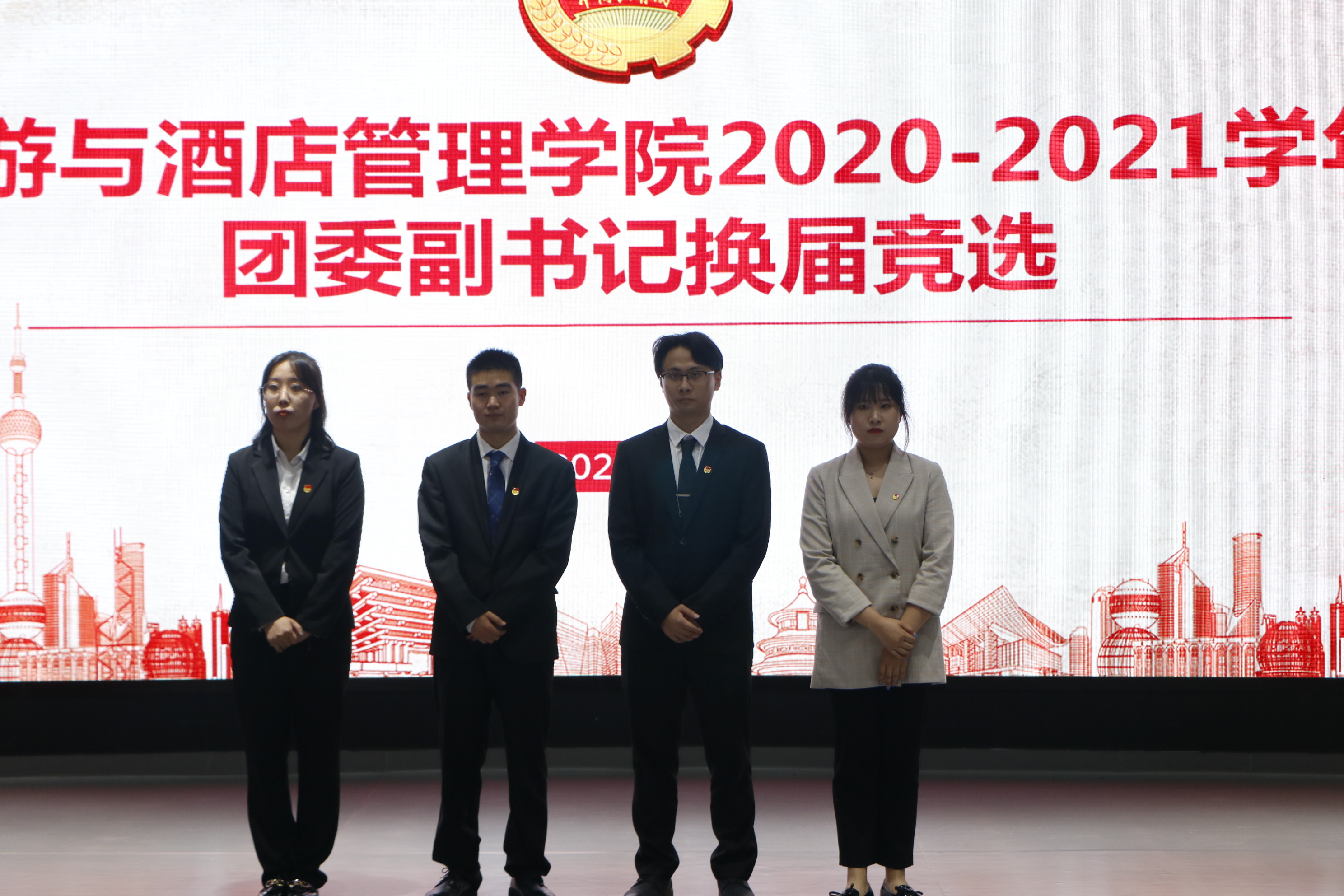 619日下午1点,旅游与酒店管理学院团委在北院路演大厅举行2020-2021学年团委换届大会。本次换届竞选面向全院团组织展开,遴选德才兼备、品学兼优、综合素质较高的学生团干部,竞选过程公平、公正、公开。学院团委负责人杨倩、学院专职组织员葛已强、团委副书记李舒琦、龚宁忄、段志强及团委所有部长、团副候选人参加大会。民主评议小组由学院学生会主席团成员、团委各部门部长及2017-2019级各团支部代表组成。
