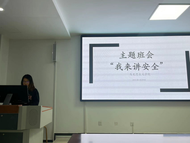 为进一步加强学生安全宣传教育工作,提高学生们的安全意识和避险能力,切实保障学生的生命安全。2023年3月29日,马克思主义学院为对学生进行安全教育,于英华苑A-416多功能报告厅成功召开“我来讲安全”主题班会。本次主题班会共有23个主题,分别由23位同学讲述。主题内容分别为防火知识、防盗知识、防骗知识、防不良校园网贷知识、防抢知识、防滋扰知识、防性侵害知识、安全用电知识、交通安全知识、食品安全知识、预防呼吸道疾病传染卫生防疫知识、禁毒防艾知识、大学生心理危机识别及应对、计算机和网络安全知识、国家安全知识、防踩踏安全知识、防暴恐安全知识、防校园欺凌知识、灾害自救知识、防非法宗教活动知识、防汛防涝防溺水知识、常用急救知识、报案、急救电话及使用方法。