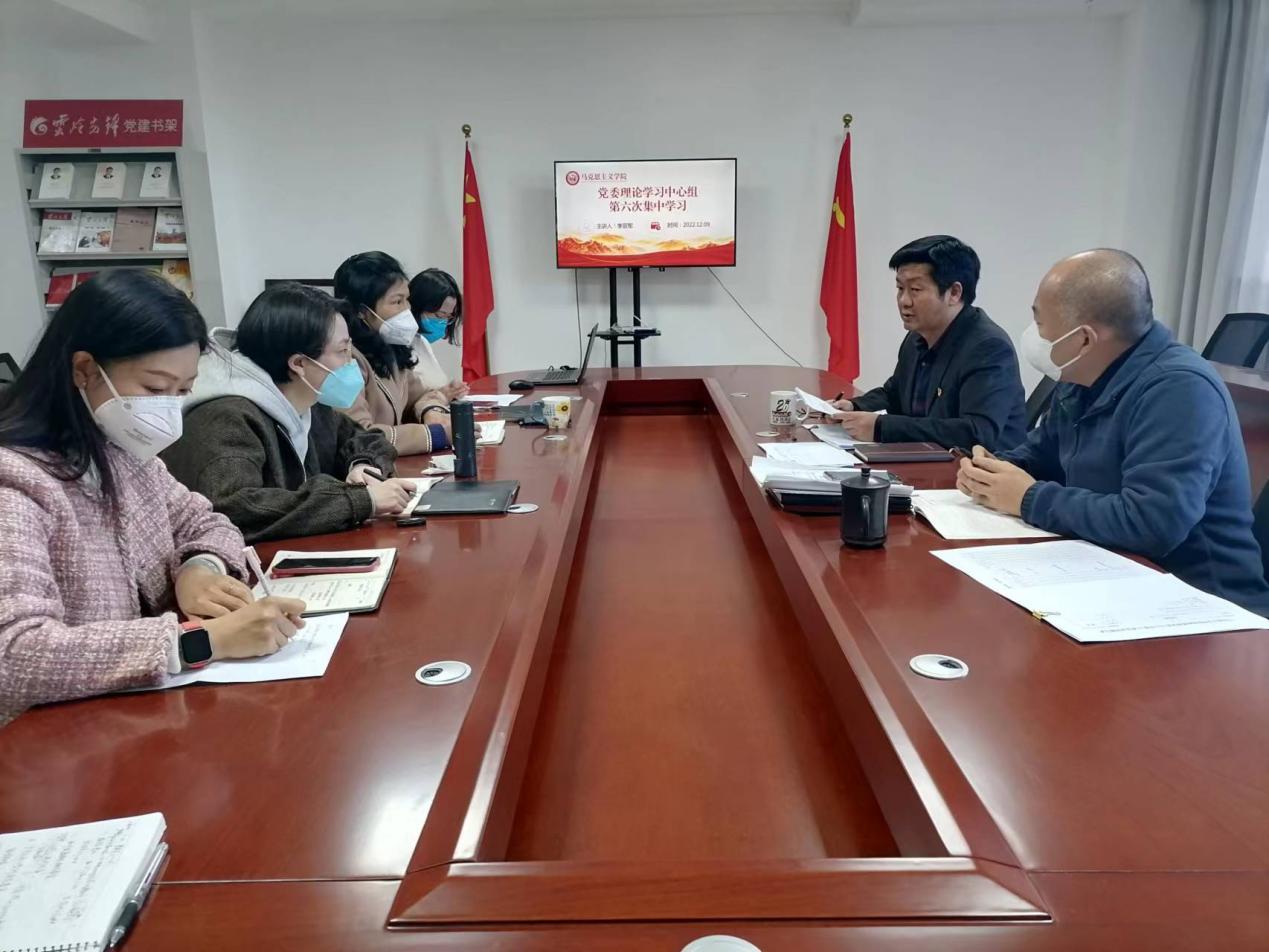 12月9日下午,马克思主义学院党委理论中心组在英华苑411会议室开展第六次集中学习,传达学习学校第五次党代会精神。本次学习由院长宁乐锋主持,党委书记李亚军主讲,全体党委委员和科级干部参加学习。