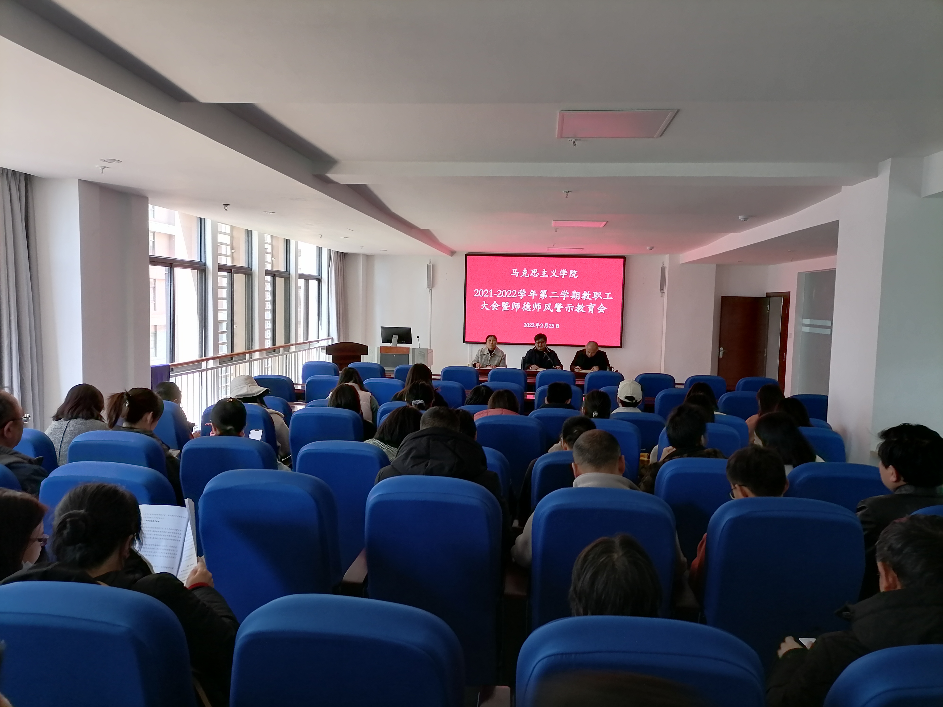 2月25日下午,马克思主义学院召开新学期教职工大会暨师德师风警示教育会。