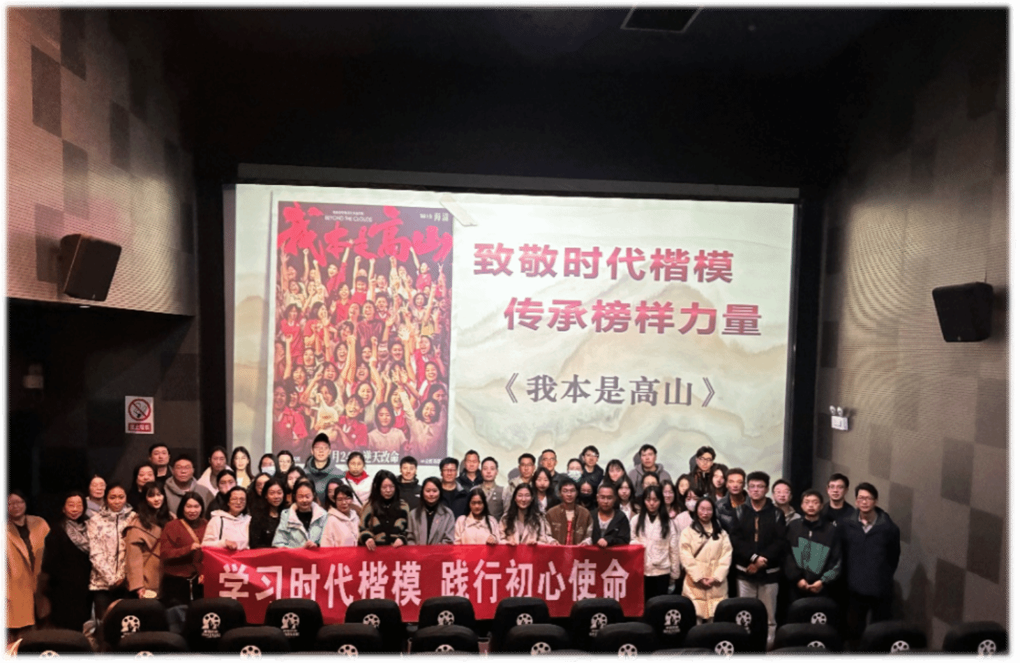为进一步压实师德师风建设责任,强化党员的使命担当,培育和践行社会主义核心价值观,2023年12月1日上午,马克思主义学院组织师生观看《我本是高山》。