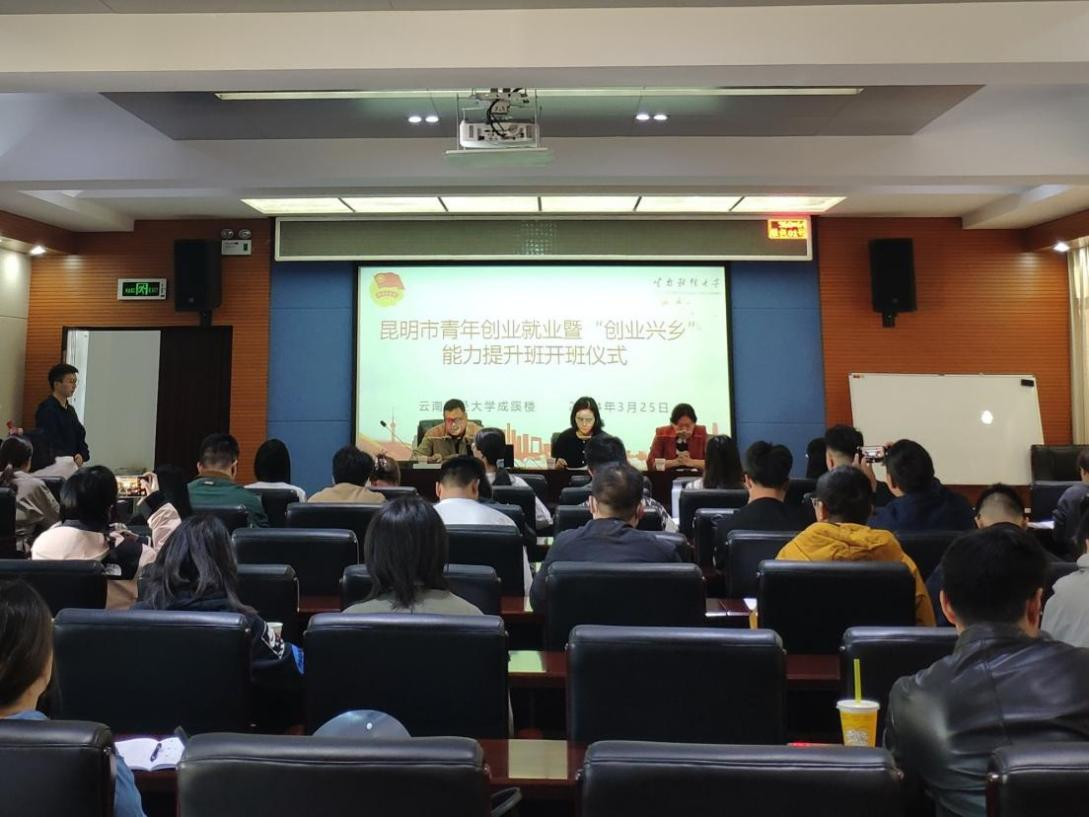 2024年3月25日,为全面落实习近平总书记关于青年工作的重要思想,积极响应云岭青年心向党“1+5”工程和青年创业兴乡三年行动,进一步提升全市共青团系统创业担保贷款工作和就业创业相关工作的业务能力,由昆明市共青团系统委托william威廉中文官网财政与公共管理学院举办的昆明市青年创业就业暨“创业兴乡”综合能力提升培训班在成蹊楼406教室开班,共青团昆明市委副书记张媛、财政与公共管理学院副院长李重照出席开班仪式并讲话,共青团昆明市委青年发展部部长赵松主持开班仪式,昆明市共青团系统共计60名学员参加了开班典礼。