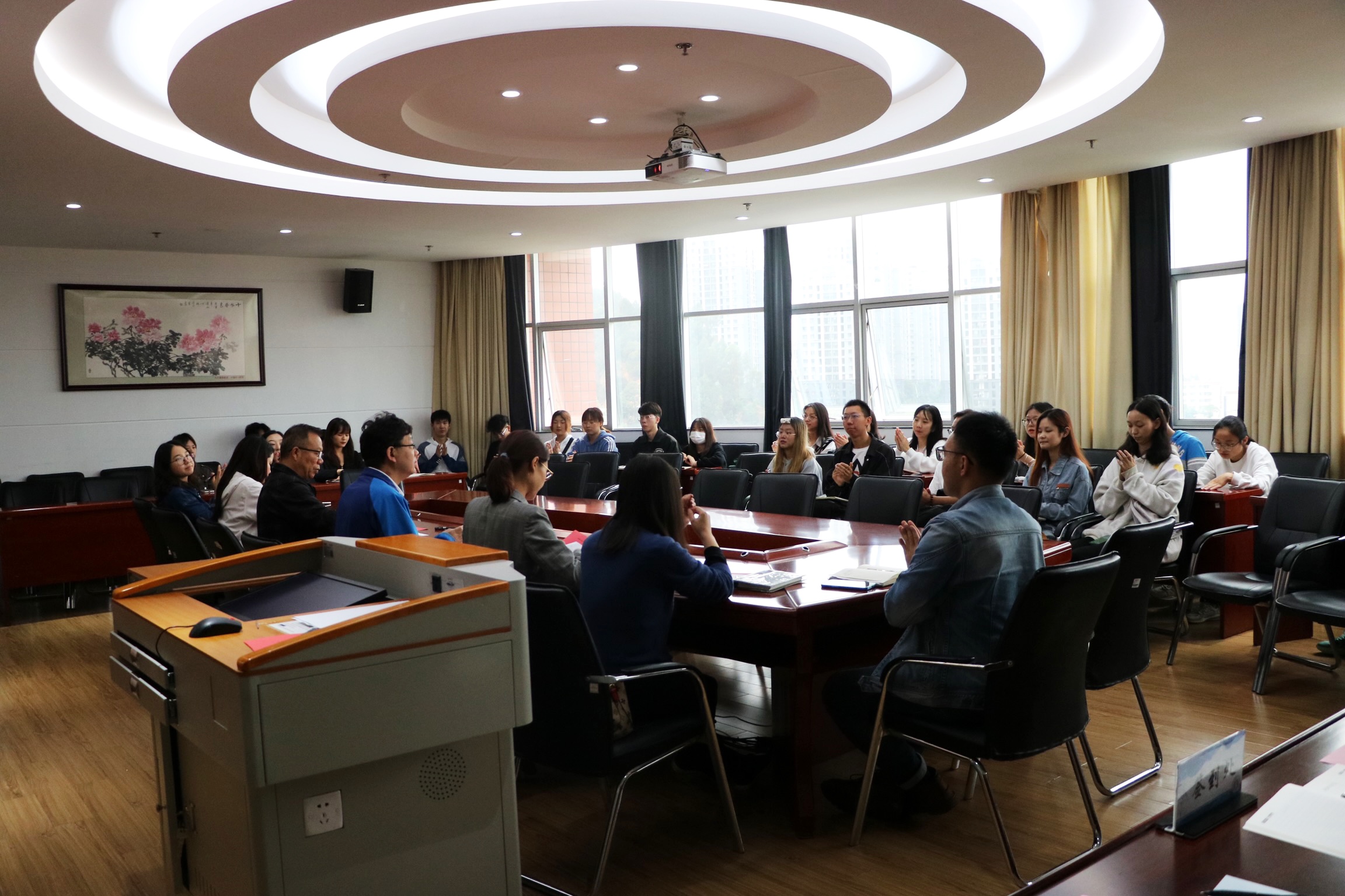 6月11日,财政与公共管理学院于南院逸夫楼923教室召开“学党史 严纪律 肃考风”第十届诚信考试大会,财政与公共管理学院党委书记朱文、副院长韩全芳出席会议。学院辅导员、组织员及学生骨干、学生党员、各班学生代表参会。会议由团委书记饶篁主持。