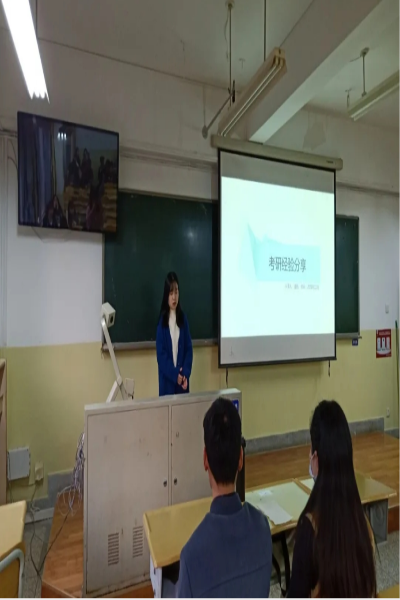 考研分享会结束后,徐晓辉同学分享考研公众号,由袁娇老师在班群内分享,为考研同学提供便利。人各有志,希望同学们能尽早确定自己的目标,并朝着自己的目标努力奋斗,以高标准要求自己。要么不做,要么全力做好。加油!