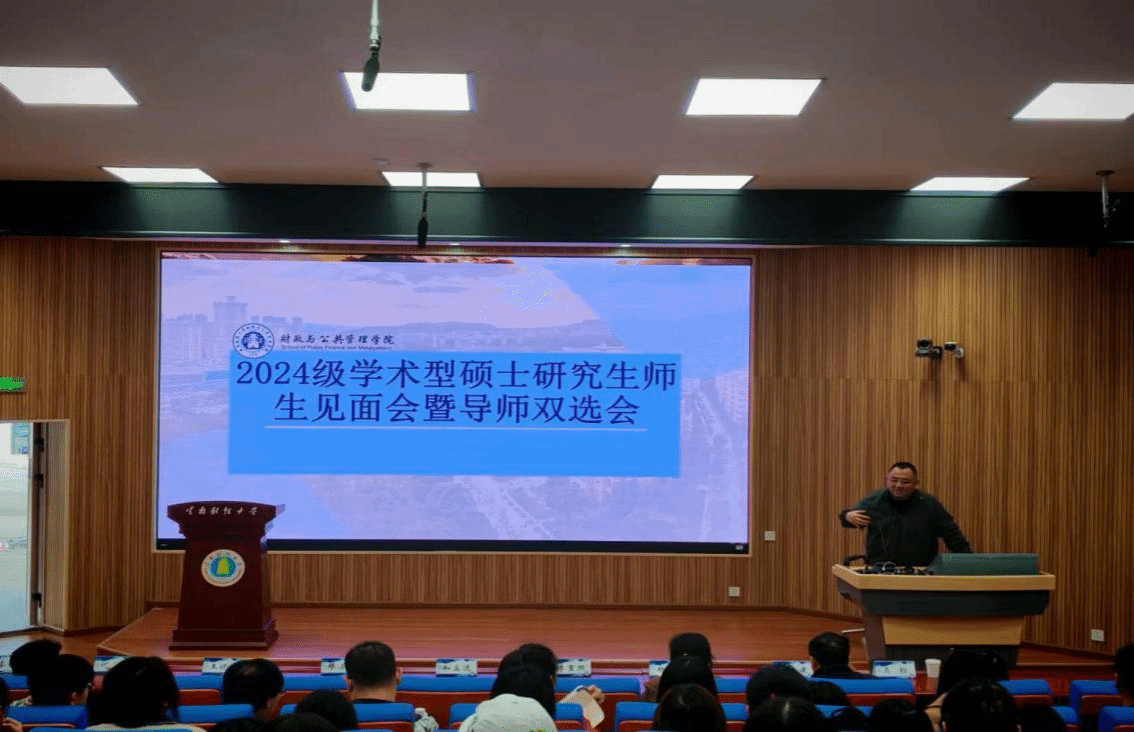 为增进2024级硕士研究生与专业导师之间的沟通交流,促进老师和同学更好地进行“双向选择”,财政与公共管理学院分别于10月11日、23日组织两场师生见面会,9个硕士学位专业的导师代表和200多名硕士研究生参加了见面会。