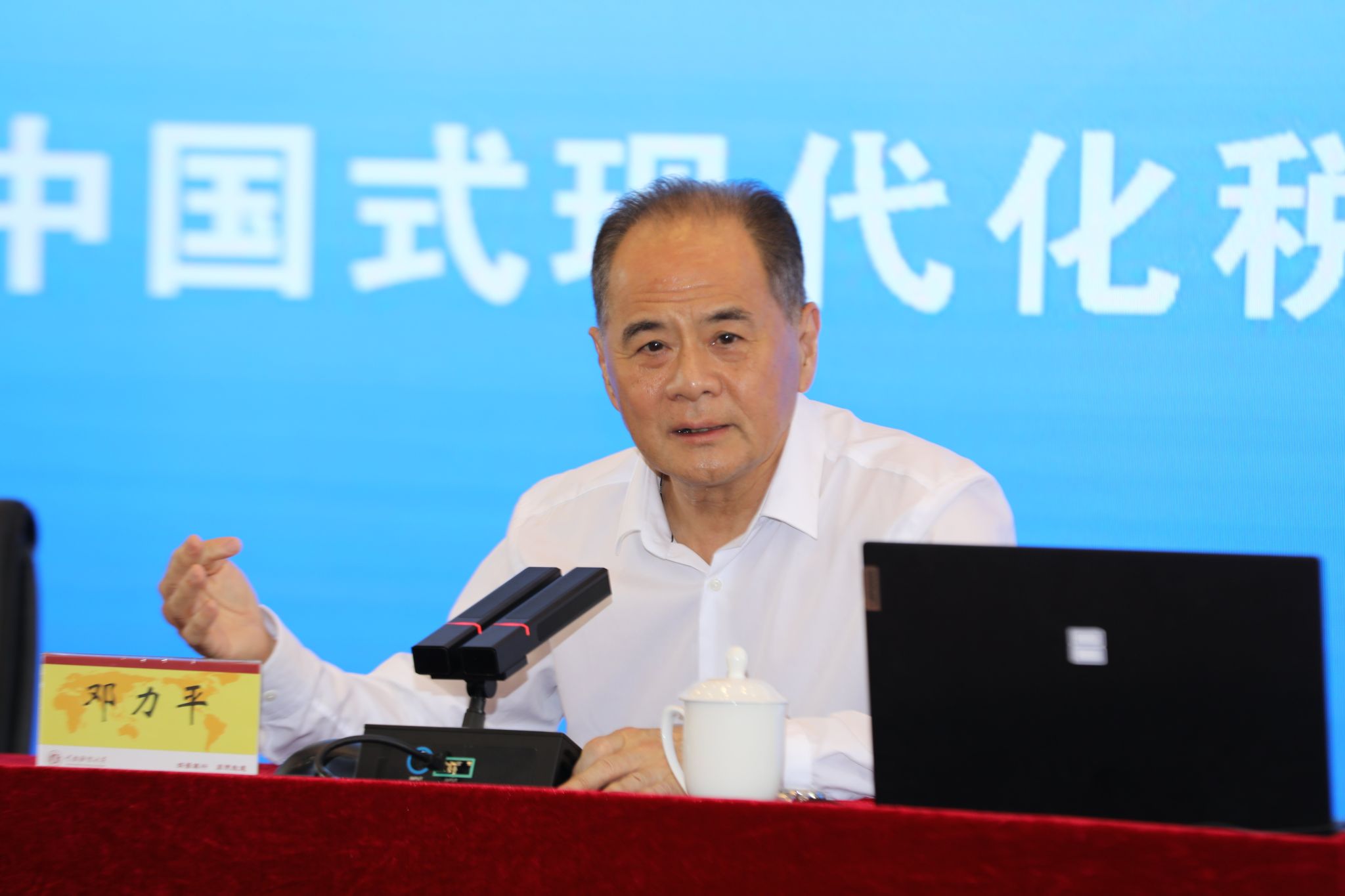 邓力平教授强调,要深刻领悟习近平新时代中国特色社会主义思想,特别是习近平经济思想的核心要义。他系统解读了习近平经济思想在财税领域的实践体现,将“七个坚持”创新性归纳为“党管经济”“人民中心”“发展规律”“体制机制”“宏观调控”“重大战略”“方式方法”,通过模块化解读助力师生精准理解记忆。他紧扣中央经济工作会议精神,对当前经济形势下税务实践面临的挑战与机遇展开全面剖析,并围绕高质量推进中国式现代化税务实践行稳致远这一目标,提出极具价值的专业见解,为财税领域的理论研究与实践创新提供了重要启发。
