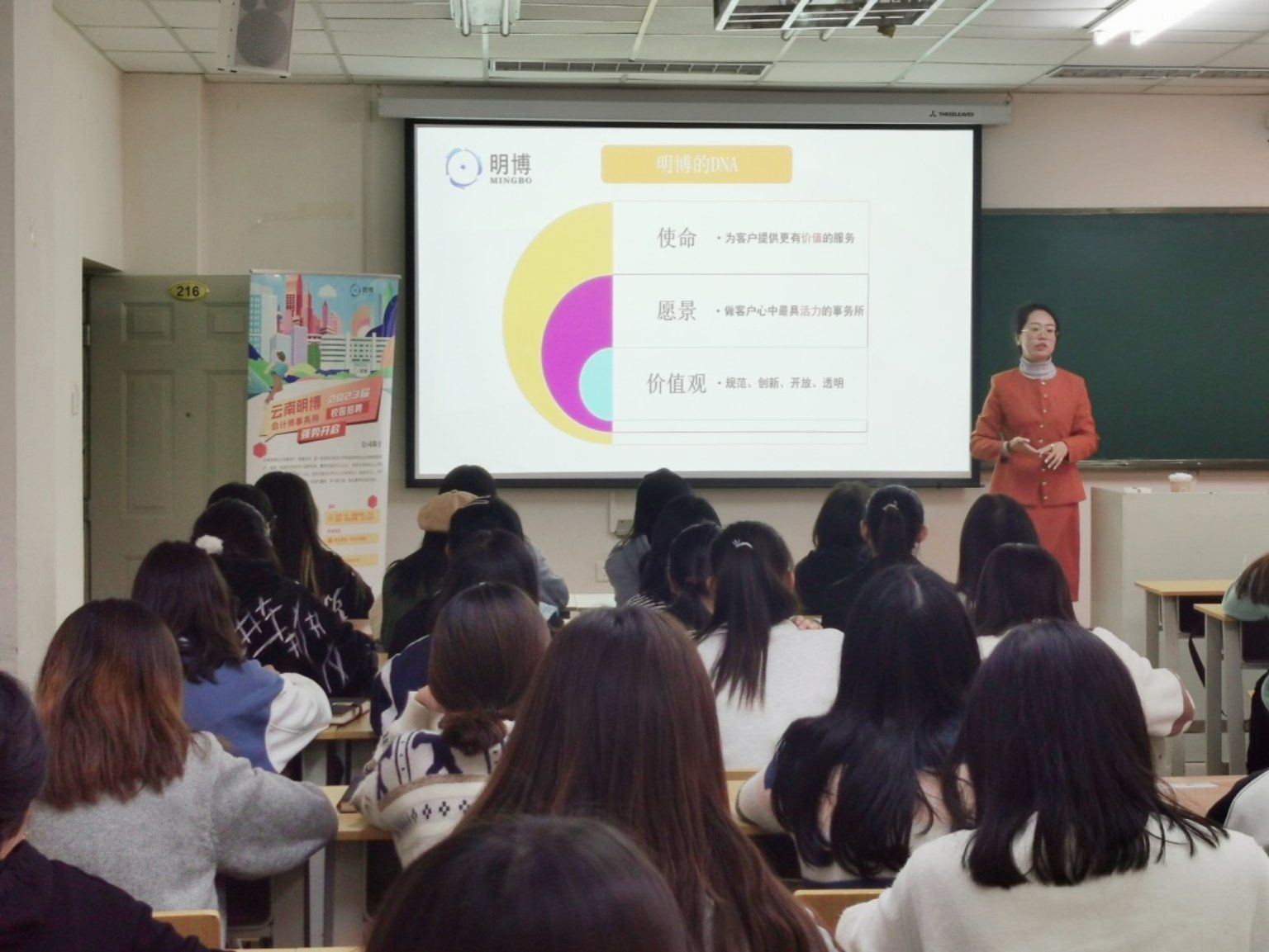 11月11日下午,财政与公共管理学院学生管理科、团委在北院卓远楼216教室举办云南明博会计师事务所专场宣讲会。云南明博会计师事务所副总经理王媛媛,运营助理、学院2021届毕业生刘怡媛,学院就业联络员毛丹及60余名毕业生参加了此次宣讲会。