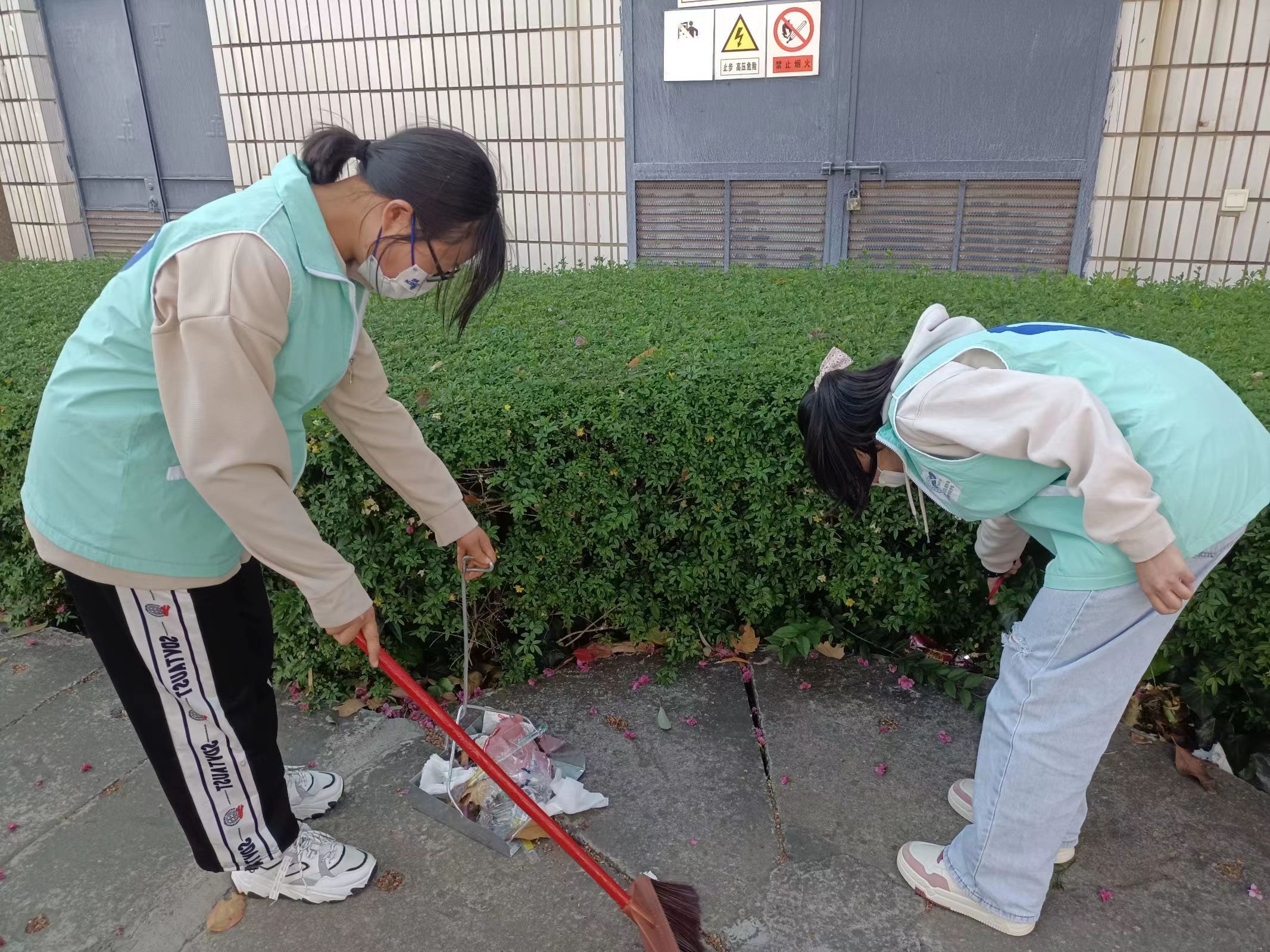 活动时,志愿者们到指定地点集合,统一领取打扫工具和志愿者服装,分工明确,团结合作,对校园内的绿化带、街道等区域进行了清扫。同学们用垃圾钳将将废纸、塑料、烟头等垃圾捡起,清扫道路,并进行垃圾分类。