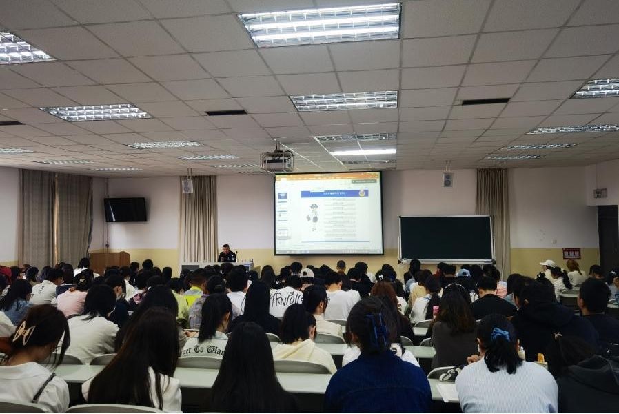 普劲松以“共筑安全屏障 构建和谐校园”为主题,紧紧围绕人身安全、交通安全和财产安全等三个方面开展讲座。他重点从电信网络诈骗相关知识、防范方法及应对措施、国家相关的法律法规、安全提示等方面对防范诈骗进行讲解,强调防范诈骗必须做到“四要四不要”“六个一律”,并向大家讲解分析了校园典型的诈骗案例。他强调,每位同学都是自身安全的第一责任人,要强化安全意识,筑牢安全底线。