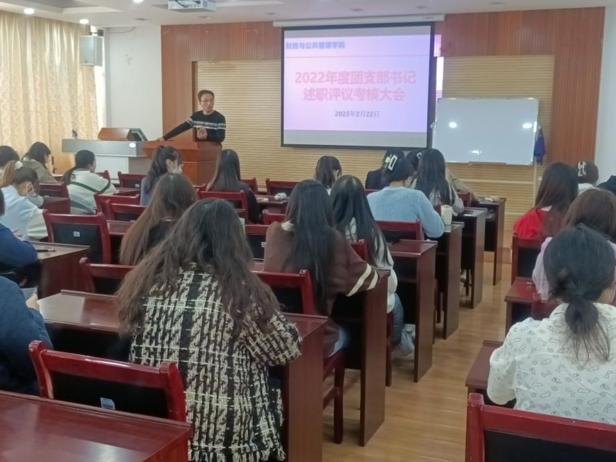 2023年2月22日,财政与公共管理学院在北院逸夫楼603开展基层团组织书记述职评议考核会议。院团委负责人李宁主持会议。