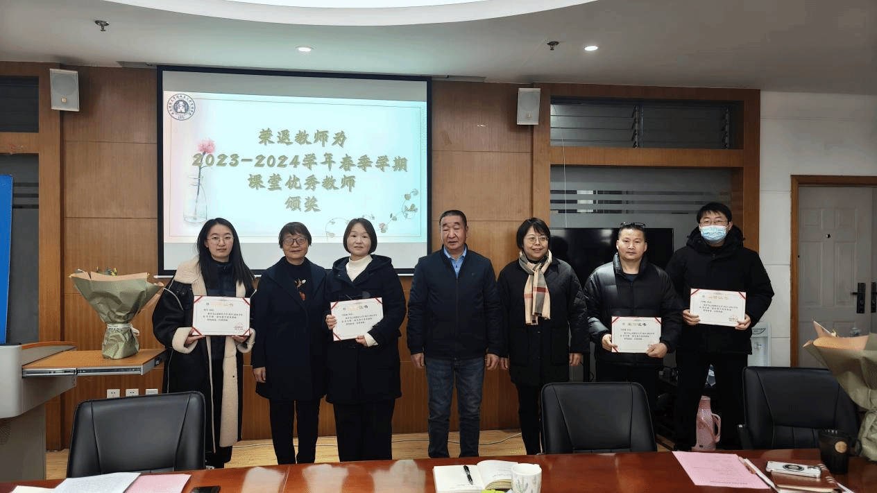 荣退仪式上,播放了学生们为荣退老师精心准备的祝福视频,学生代表朗诵了诗歌《梦织新章》,学院新进的教师为荣退教师赠送了鲜花。荣退教师为新进教师佩戴了校徽,并为荣获学校2023-2024学年春季学期“课堂优秀教师”颁奖。