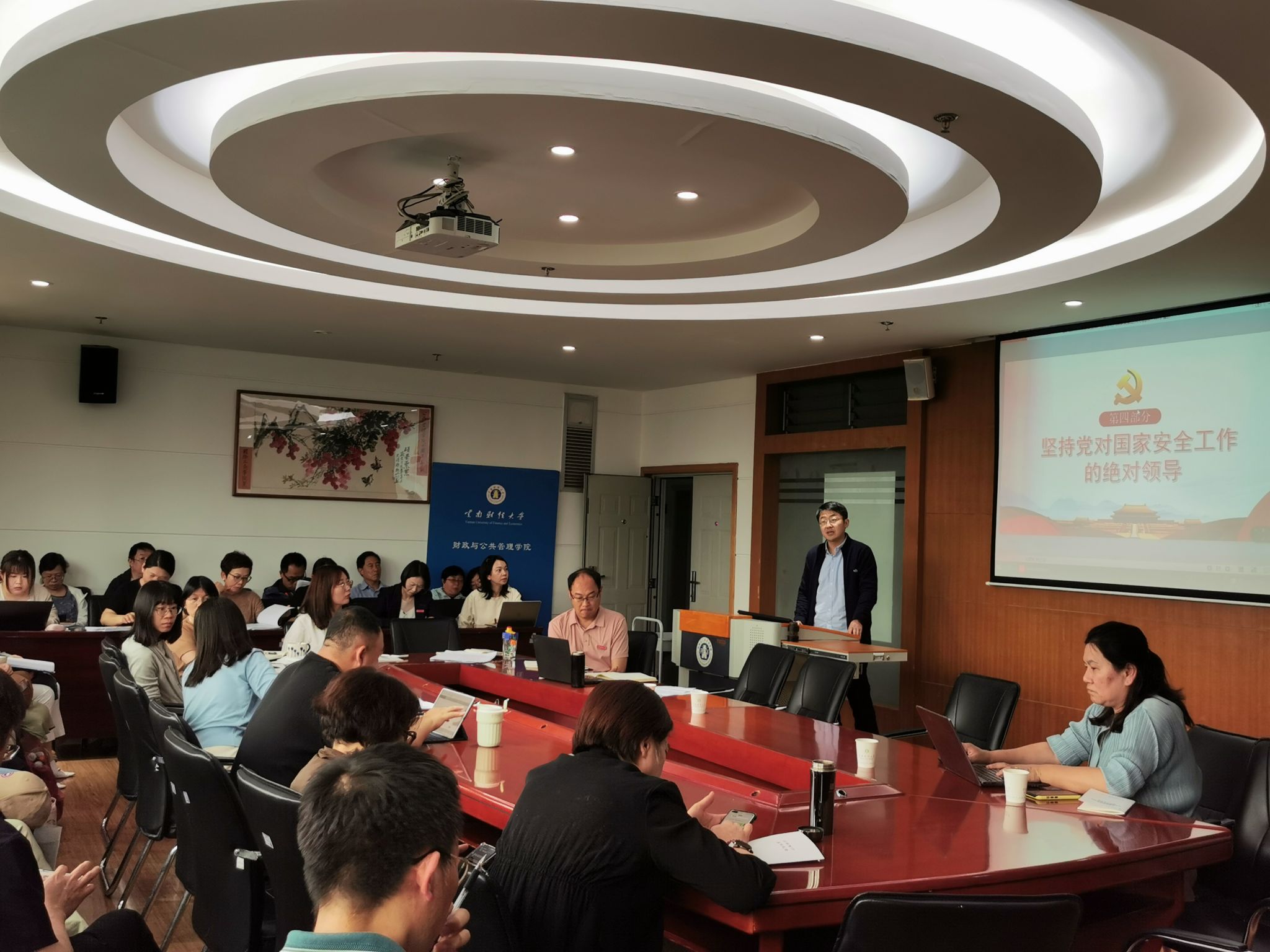 4月23日下午,财政与公共管理学院在逸夫楼923召开全院教职工理论学习会,专题学习习近平总书记关于总体国家安全观的重要论述。