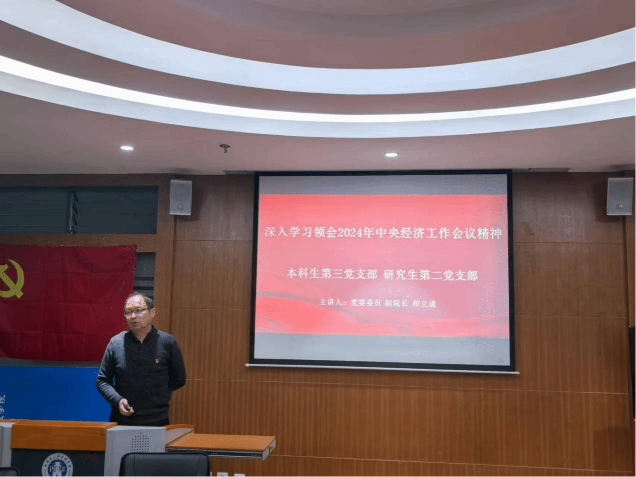 12月24日,财政与公共管理学院党委委员、副院长和立道为本科生第三党支部、研究生第二党支部全体党员讲授专题党课。
