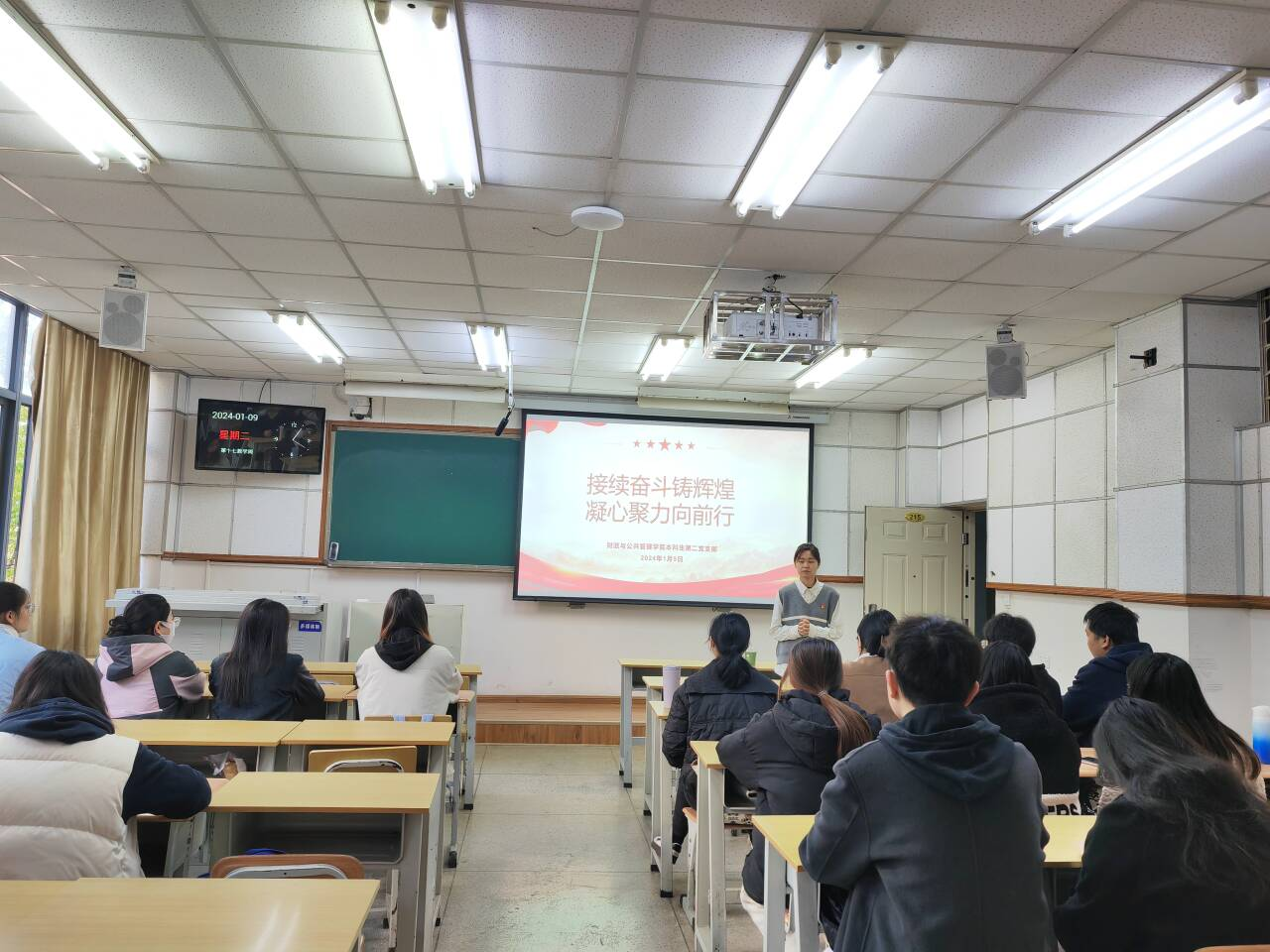 202419日,财政与公共管理学院本科生第二党支部在北院卓远楼215室召开“接续奋斗铸辉煌 凝心聚力向前行”一月主题党日活动。