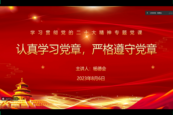 2023年8月6日,财政与公共管理学院本科生第三党支部于线上举办“认真学习党章,严格遵守党章”专题党课,本次党课由支部书记杨德会同志主讲,支部全体同志参加学习。