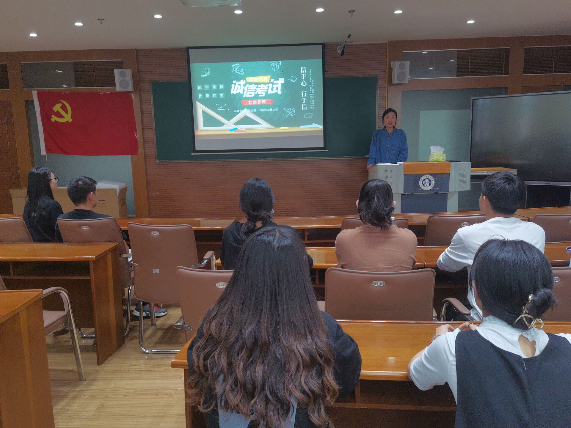 时光飞逝,转眼一学期的学习又将告一段落,本学期期末考试也将到来,我们要面临的既是一次学习成果的检阅,更是一场道德与诚信的考验,严肃考风考纪成为普遍关注的问题。本科生第四党支部于2022年6月10日下午在逸夫楼706召开诚信考试教育大会,本次活动由书记葛译遥同志主持召开。