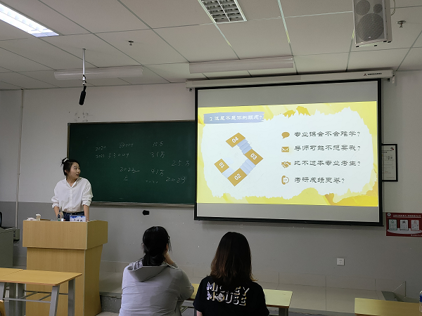 最后,由两位学生嘉宾王晓冉和牛梓琳同学分别对公务员、事业单位以及银行考试的经验和研究生备考方法等内容进行分享,总结了考试的成功经验,提供了关于考前准备、高效学习方法、面试注意事项等方面的参考意见,加强了在校大学生之间的交流与学习。