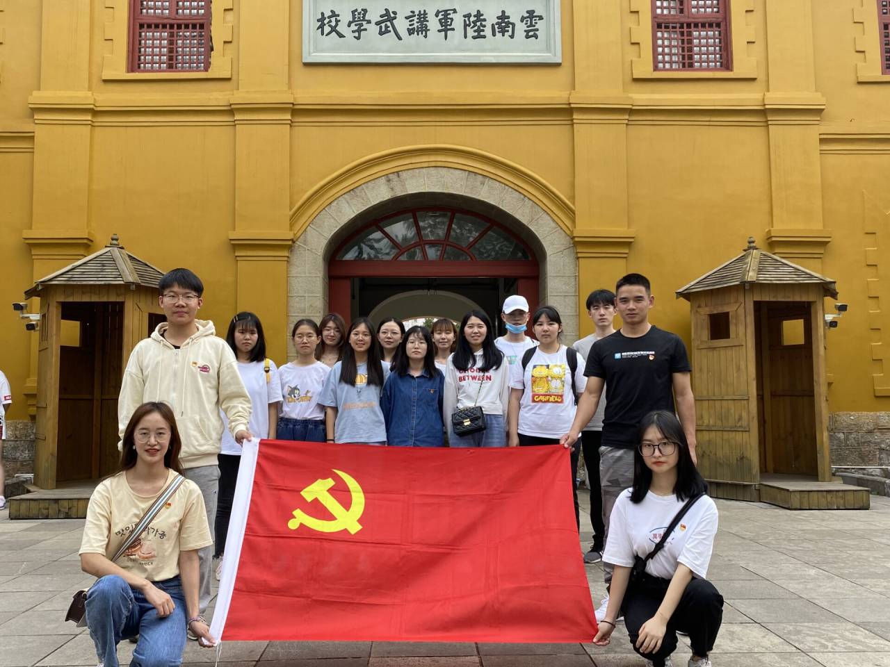 下午两点半,支部书记葛译遥同志领导支部党员同志们在云南陆军讲武堂门前集合完毕后,有序进入陆军讲武堂,开启了一段深入人心的党员红色教育历程。半小时自由活动后,下午三点,同志们在讲解员的带领下,开始了一段与讲武堂历史和史上优秀将领休戚相关的学习旅程。