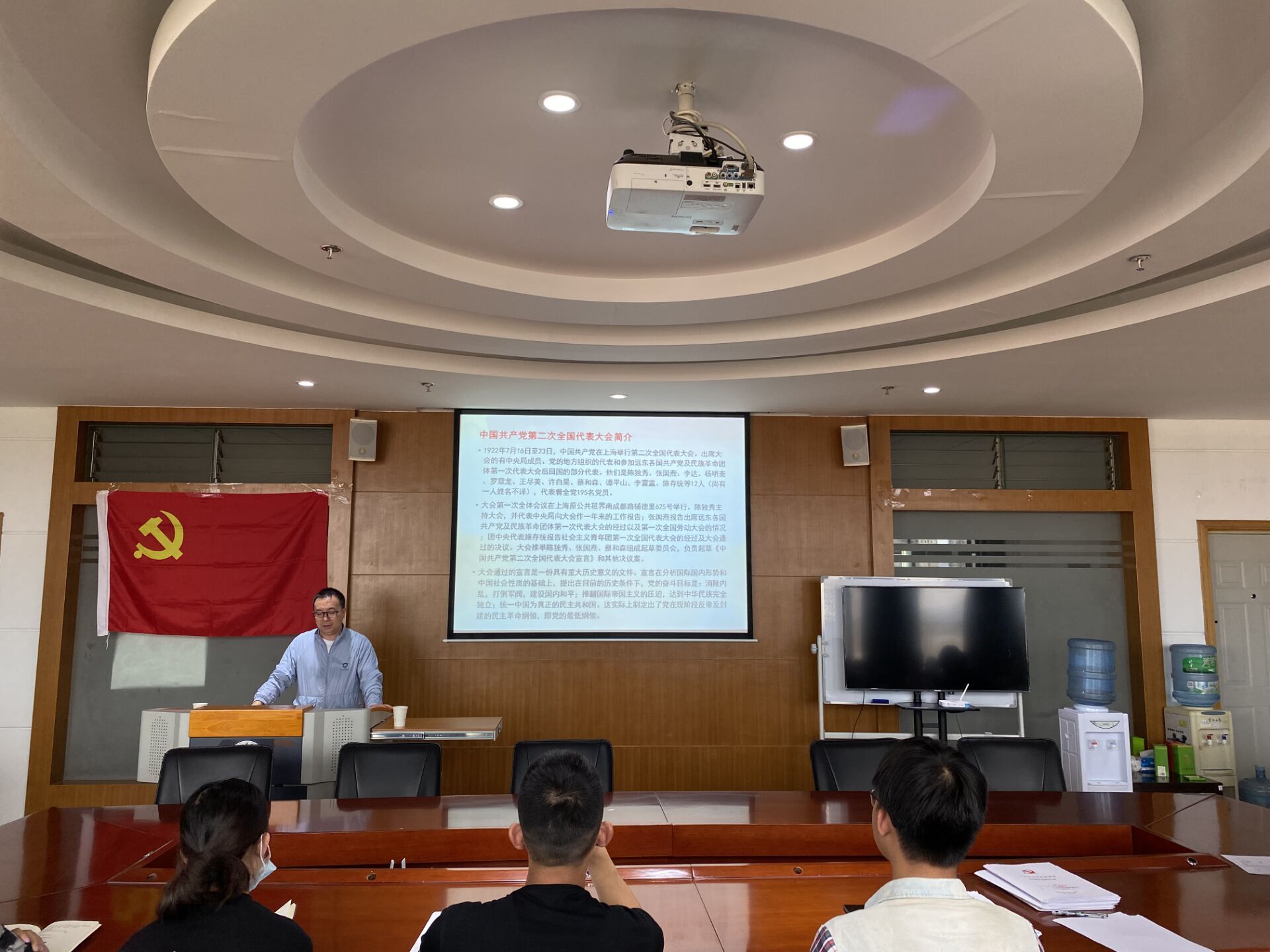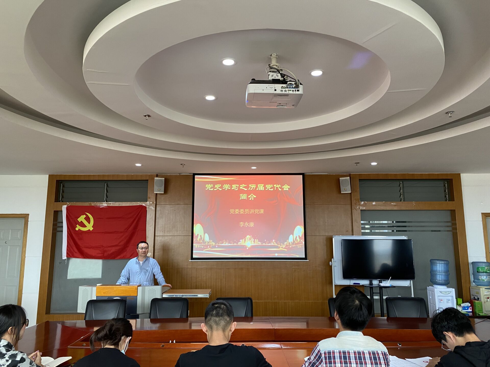 李永康老师着重向与会党员讲解了中华人民共和国成立以前的七次全国代表大会,中国共产党从嘉兴南湖的一条小船上走上来,走向新中国,走到了改革开放的春天,走出了一条救国救民、复兴中华的道路,走出了一条社会发展、经济繁荣的道路。