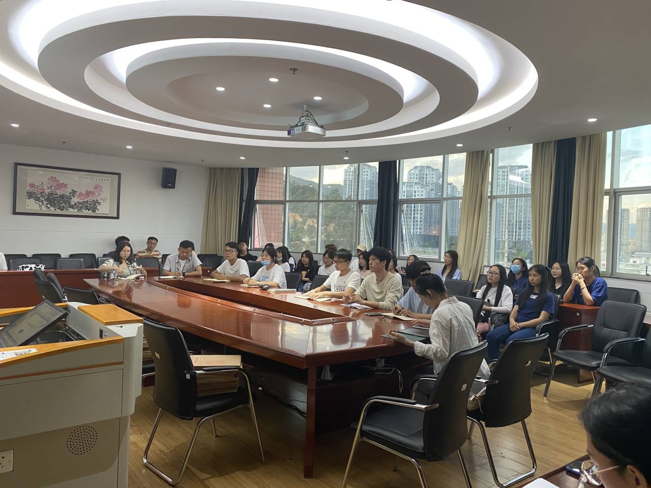 2021年5月14日晚,财政与公共管理学院本科生第三党支部与研究生第二党支部在逸夫楼923室联合举办“学党史·我为群众办实事—考研分享会”主题党日活动。研究生第二党支部支部书记毛丹同志、本科生第三党支部全体党员以及学院其他年级同学参加活动。