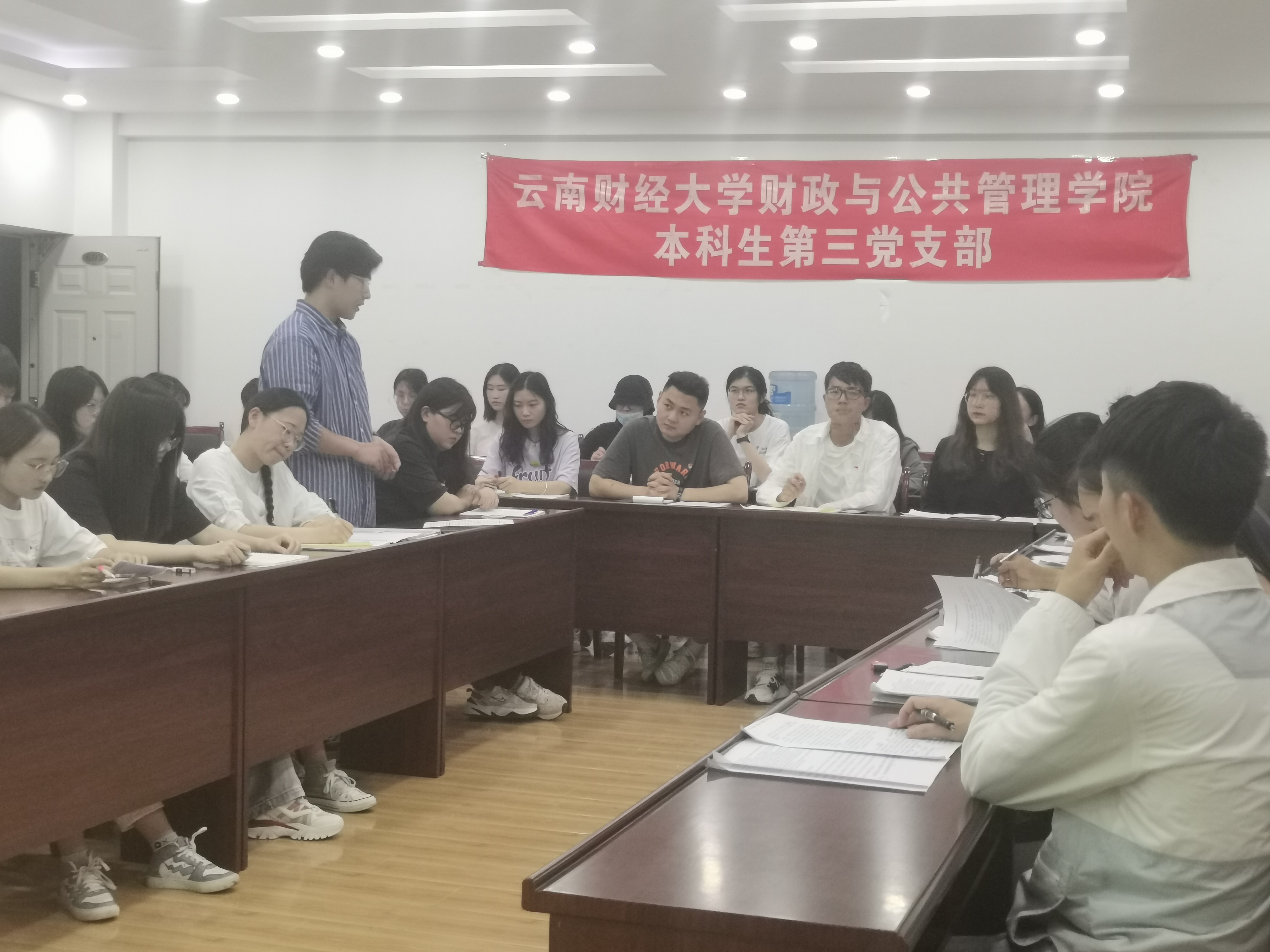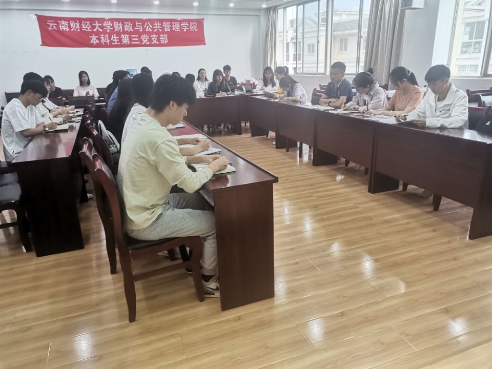 2021年5月12日晚上19时,财政与公共管理学院本科生第三党支部于北苑逸夫楼603室组织召开支部大会,讨论接收预备党员暨讨论2010级毕业生卢佳慧组织关系事宜。本次会议由支部书记杨德会同志主持,支部全体党员、发展对象参加。