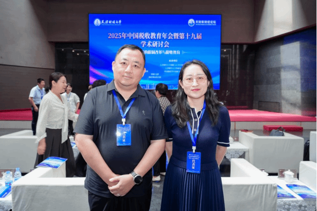 2025年6月15日,财政与公共管理学院财税系主任闻勇、税收教研室主任袁娇前往天津参加中国税收教育年会暨第十九届学术研究会,与来自中国社会科学院、中央财经大学、厦门大学、上海财经大学、东北财经大学等40余所高校专家围绕“数智时代的税制改革与税收教育”主题开展深入交流,共商数智时代税收人才培养与税收教育新路径。