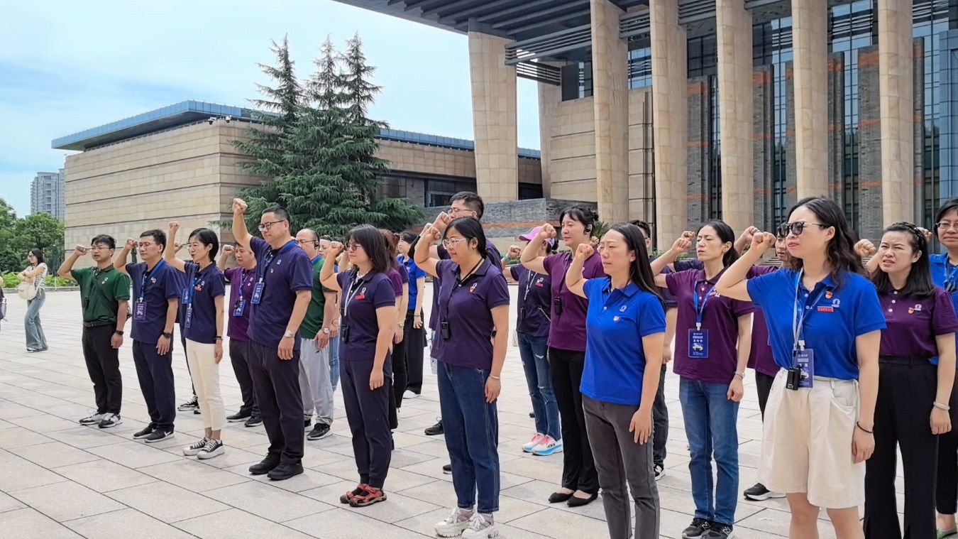 参观结束后,举行集体宣誓仪式,在鲜红的党旗映衬下,无论是现场的骨干教师还是通过腾讯线上会议参与的党员,都共同举起了右拳面向宣誓墙庄严宣誓,重温入党誓词。誓词回响,不仅是对过往承诺的回顾,更是对未来行动的誓约,它激励着每一位党员不忘初心,牢记使命,将个人理想融入国家经济社会发展大局,以实际行动践行共产党人的初心与使命。宣誓墙前洋溢着庄重而热烈的气氛。