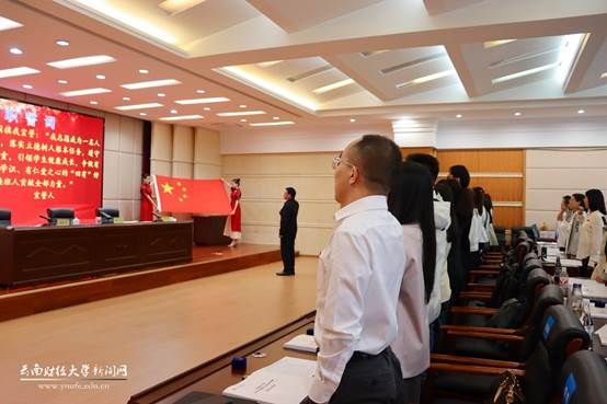 开班典礼上,陈红为新进教职工代表赠送校徽、校标。庞春平作培训工作安排、进行培训纪律教育,并组织全体新进教职工开展入职宣誓。