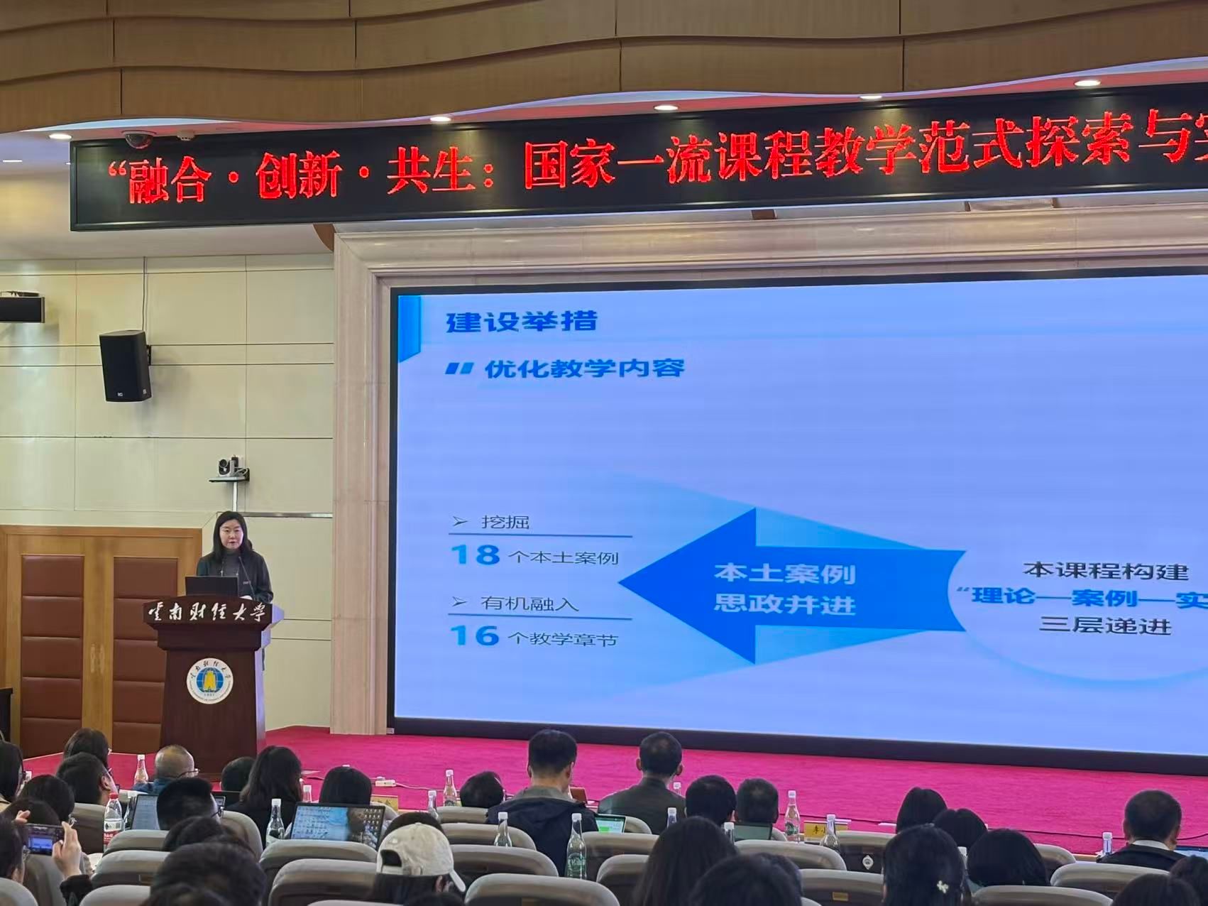 商学院杨玥、唐泳、黄波三位国家级一流课程负责人围绕“以虚促实”“仿真融合”“线上线下混合”三大教学模式,分享了各自的教学创新经验。