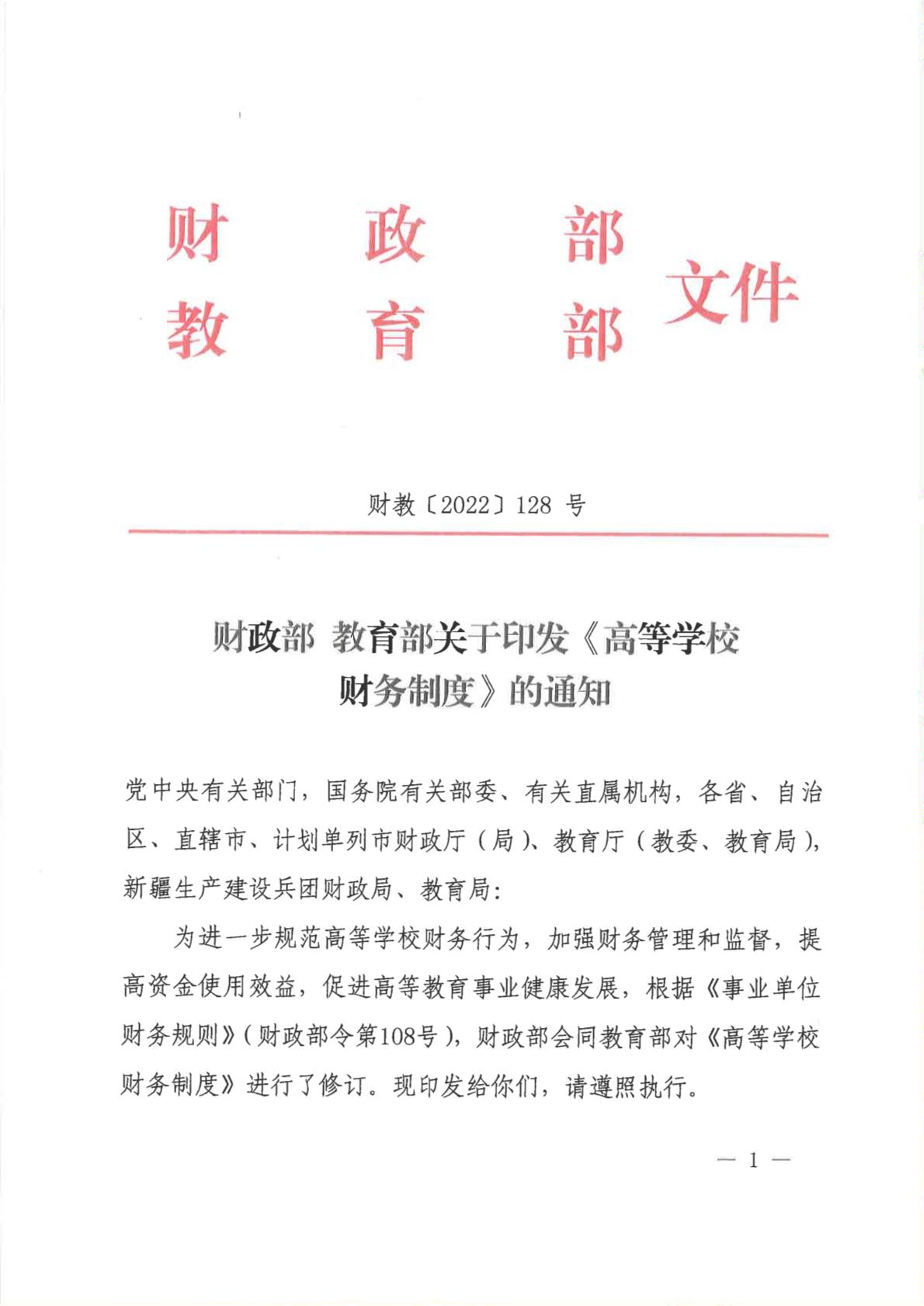 《高等学校财务制度》(财教〔2022〕128号)