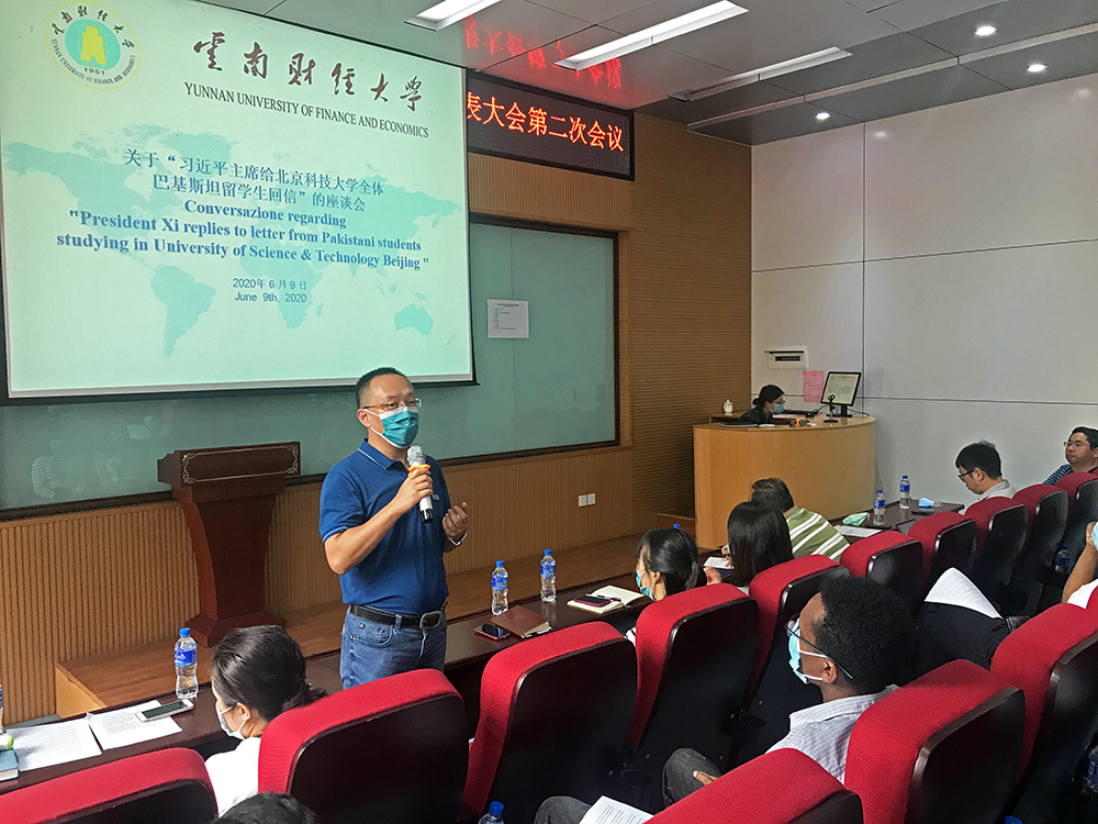 6月9日下午4点,由海外学院和国际学生教育管理中心组织全体在校留学生学习《习近平给北京科技大学全体巴基斯坦留学生回信》。习近平主席在信中对各国优秀青年来华学习深造表示欢迎,鼓励他们多同中国青年交流,同世界各国青年一道,携手为促进民心相通、推动构建人类命运共同体贡献力量。