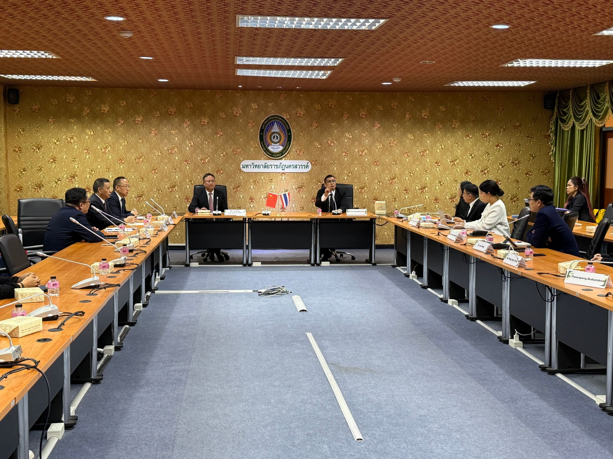 在那空沙旺皇家大学,访问团与校长猜拉·帕拉尼等会谈,颜明介绍了学校近年发展及教育国际合作情况,表达了进一步与那空沙旺皇家大学挖掘合作潜力、拓展交流渠道,在创新合作机制、学生培养等方面开展纵深交流与合作的意愿。双方就合作开展曼谷商学院本科双学位、MBA双学位项目进行沟通讨论,商定签署合作备忘录,积极推进后续相关合作。