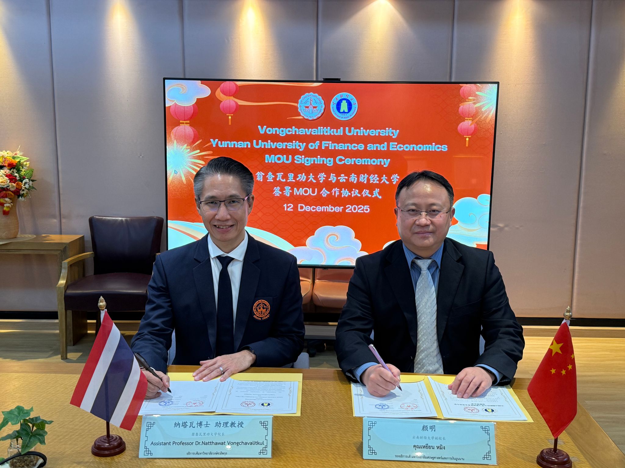 颜明在翁查瓦里功大学与校长纳塔瓦·翁查瓦里功签署两校合作备忘录,双方同意启动曼谷商学院本科双学位项目,同时尽快完成项目协议和财务协议的签署,全面开展多类型合作项目。