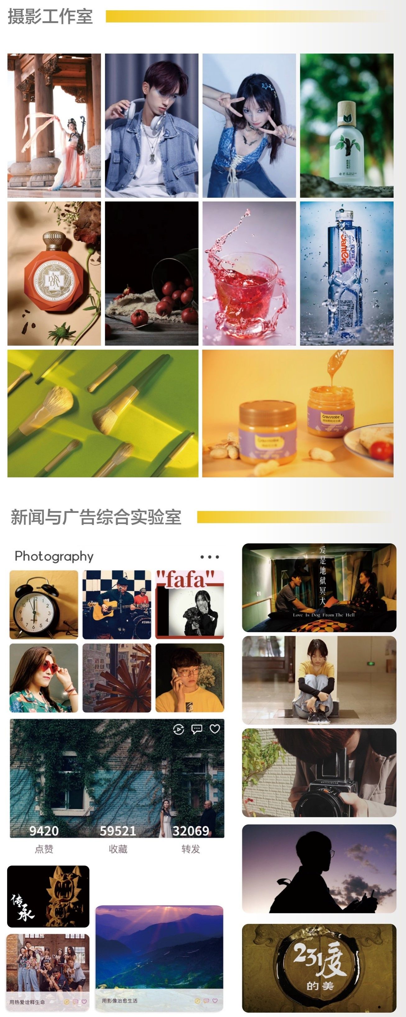 传媒与设计艺术学院目前有铁艺工作室、掐丝珐琅工作室、模型实验室、陶艺工作室、视觉综合实验室、布艺工作室、摄影工作室、数字生成实验室、新闻与广告综合实验室、图形图像工作站,共 13 间实验室(工作室),面积约 1937 平方米。