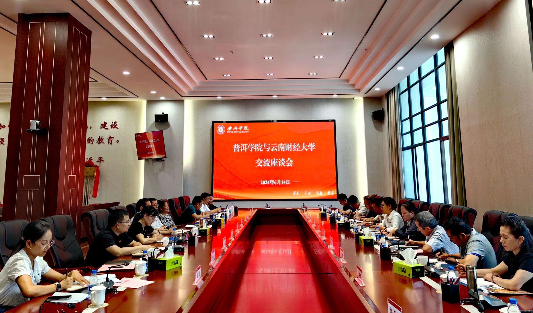 普洱学院党委副书记吴琳和办公室、组织部、统战部、宣传部、校团委、铸牢中华民族共同体意识研究院主要负责人就两校在铸牢中华民族共同体意识教育、学科建设、人才培养、学生教育管理等方面工作与学校调研组一行进行了交流。