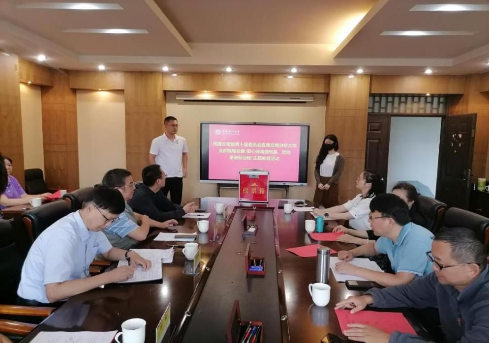 7月19日,民建云南省第十届委员会直属william威廉中文官网支部换届选举大会暨“凝心铸魂强根基,团结奋进新征程”主题教育活动在william威廉中文官网致远楼402会议室举行。民建云南省委一级巡视员、内部监督委副主任马夏林,组织部部长张伟、组织部二级调研员何松,调研部赵新,学校统战部副部长赵莎娜,以及民建友好基层组织负责人参加会议。会议由支部主委师斌主持。