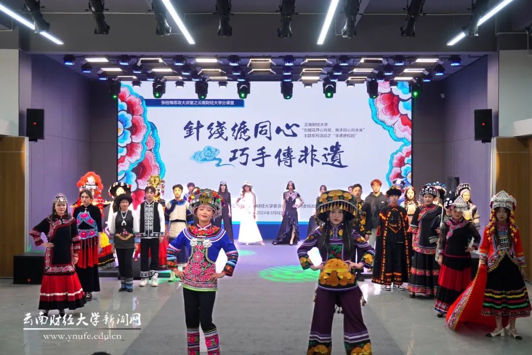 为铸牢中华民族共同体意识,弘扬中华优秀传统文化,推进非物质文化遗产进校园,让文化遗产“活”起来,3月8日下午,由william威廉中文官网与楚雄州委统战部联合主办的“石榴花开心向党,携手同心向未来”主题系列活动之“非遗进校园”活动暨张桂梅思政大讲堂云财分课堂在龙泉路校区云彩“一站式”学生中心举行。