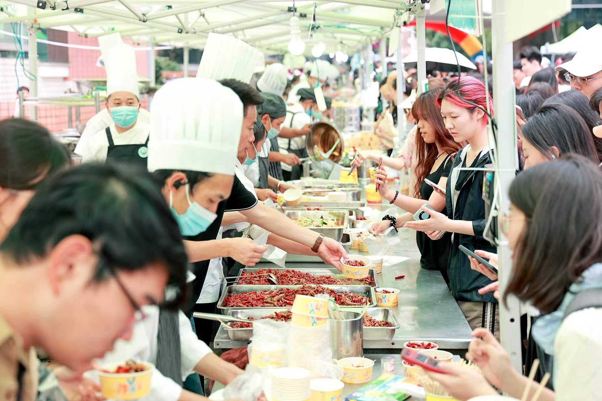 来自4所高校的厨师团队、云财餐饮团队及石屏豆腐制作方共同为师生们带来225个品种的美食,汇集川菜、粤菜、鲁菜、滇菜等多个菜系,摆设美食摊点80个。活动期间,荟华广场长桌相连,各类独具民族特色的美食吸引广大师生驻足品尝,精美的非遗体验让师生流连忘返。每一种味道都代表着一种民族饮食文化,每一道菜都承载着一段历史传承,让师生品尝不一样的麻辣鲜香和五味俱全。