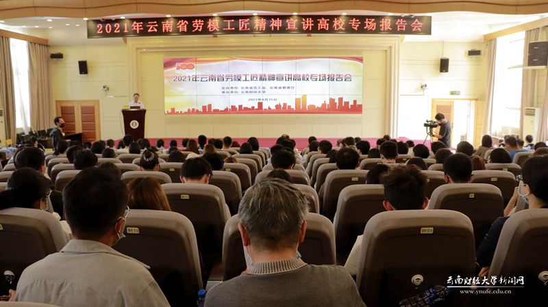 4月15日下午,由云南省总工会、云南省教育厅联合主办,学校承办的“2021年云南省劳模工匠精神宣讲高校专场报告会”在学校国际学术报告厅隆重举行。全国劳动模范,“云岭工匠”耿家盛、徐成东从不同视角向现场师生讲述了他们立足岗位作贡献的生动事迹,诠释了新时期的劳模精神、劳动精神和工匠精神。报告会由云南省总工会宣传教育网络部部长杨永生主持。