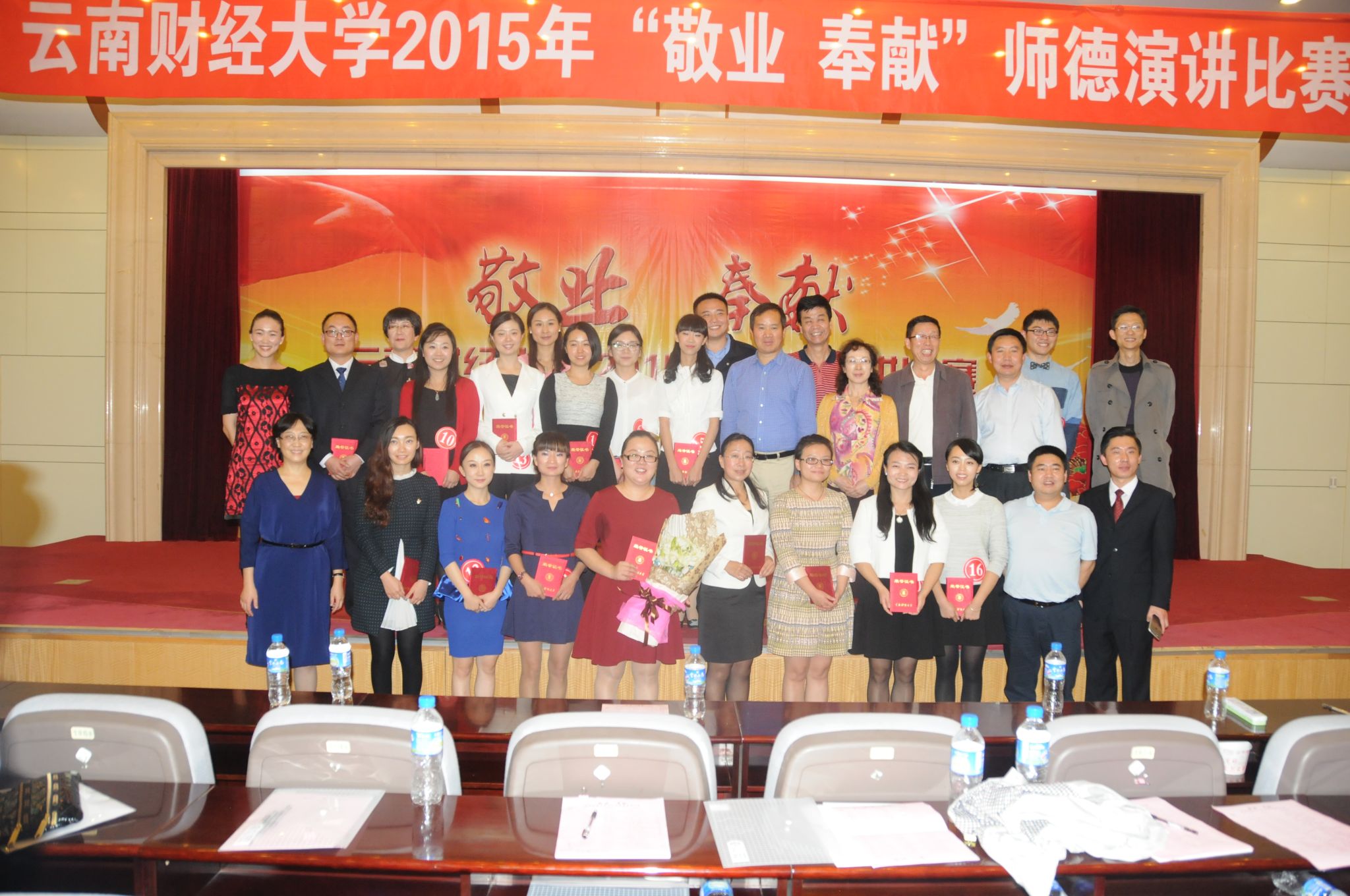 公共管理学院王晓芬老师讲述了他的同事刘洪老师,为了让学生顺利毕业,她拖着病体坚持工作,直到被医生下最后通牒才住院手术,学生亲切地称呼她为“刘妈妈”,一位位演讲的老师接踵登台,感人的故事一波又一波,优秀的教师一个又一个呈现在听众面前,正是因为有着这些成千上百可亲可敬的老师们,财大才有今天这样繁花似锦的成就。