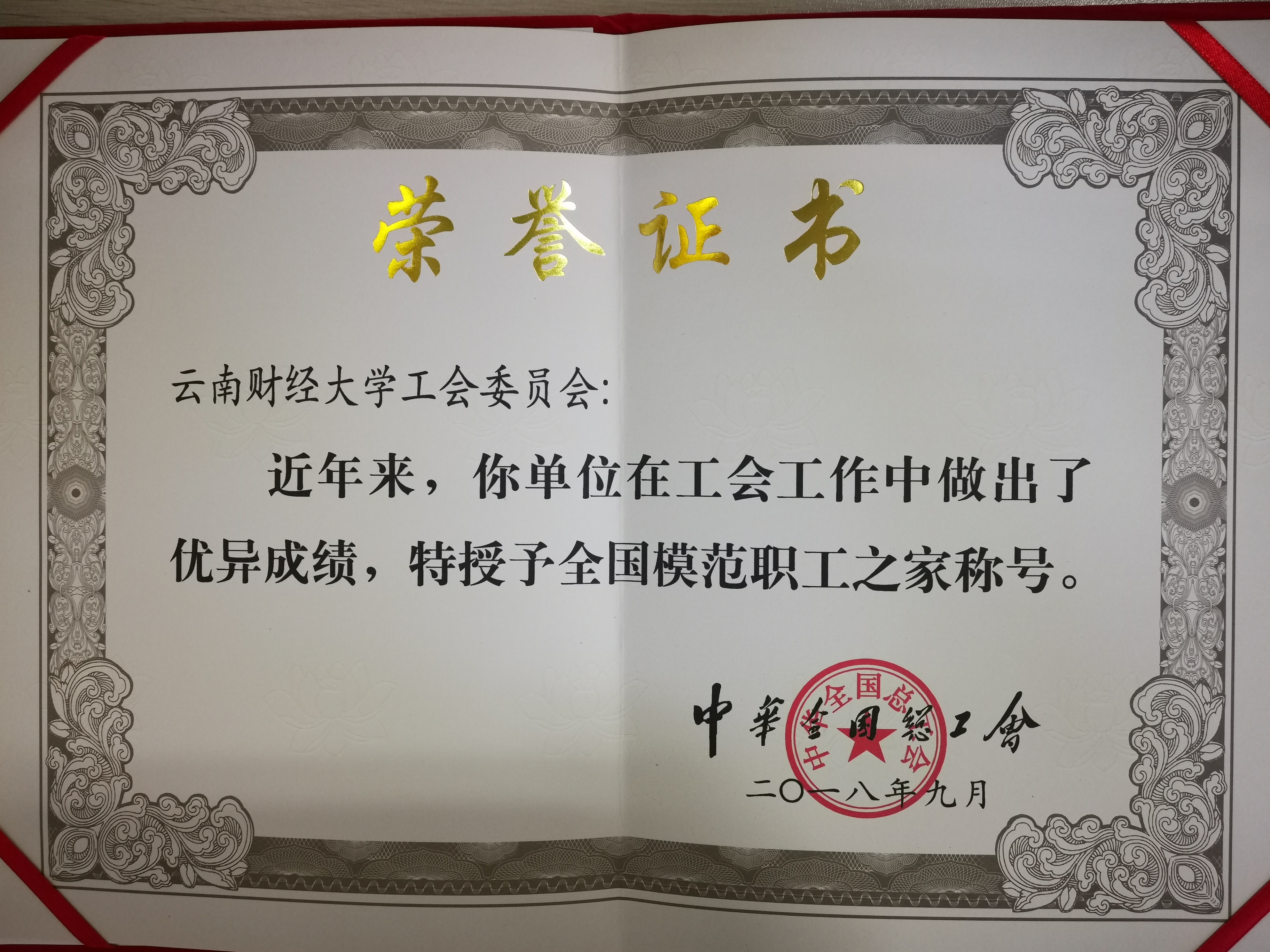 1、全国模范职工之家   中华全国总工会   20189