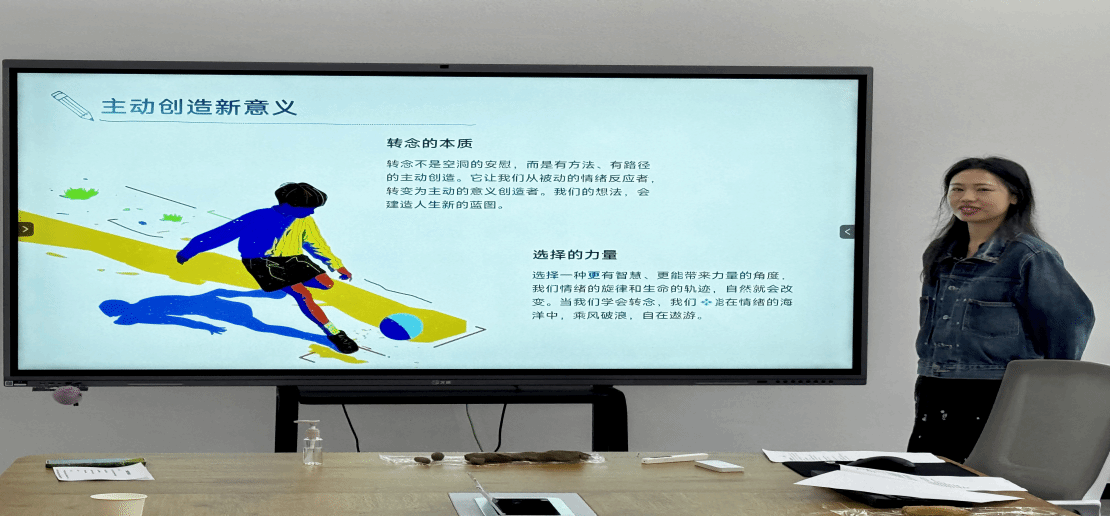 沙龙围绕课程教学展示与研讨展开,杨红老师以“家庭规则与个体成长”为主题进行了教学展示,她通过丰富多彩的课堂活动和互动式教学设计,深入浅出地探讨了个体如何打破家庭规则获得成长。舒一丹老师围绕“情绪转念的艺术”主题,分享了如何引导学生转换视角调整情绪,有效进行情绪管理。
